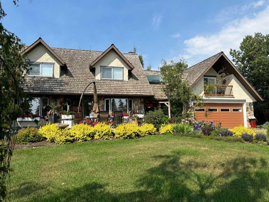 Your patch of paradise at last!!! At only minutes to Calgary, this stunning gem is situated on 5.8 acres of land on a park-like setting east of the city and just south of Glenmore Trail. Beautifully landscaped with impressive flower and vegetable gardens, and mature trees throughout. Custom built in 1980, the main level of this upscale home boasts a modern kitchen with breakfast nook, eating area with in-floor heating; formal dining room with access to partially covered west-facing sundeck; spacious living room with fireplace; 2-piece bathroom, mudroom with access to two-car heated attached garage. On the upper level you will find 3 spacious bedrooms, master bedroom with 4-piece ensuite, master retreat, with access to west-facing balcony; main 4-piece bathroom; a 2-piece bathroom with in-floor heating; family room over the garage with east-facing balcony. The basement is fully developed and includes a 1-bedroom suite (illegal) with separate walkout. In addition to this gem is a 50x30 foot 5-car detached garage with the first 2 bays insulated and heated; a large 30x48 foot steel building with 16-foot ceiling, 16 feet wide and 14 feet high insulated door, with 100-amp electrical service; multiple outbuildings; heated chicken coop with fenced-in area. Numerous outbuildings. (The adjacent 2-acre acreage with 1500 square foot home may be purchased together for an additional $649,000).
