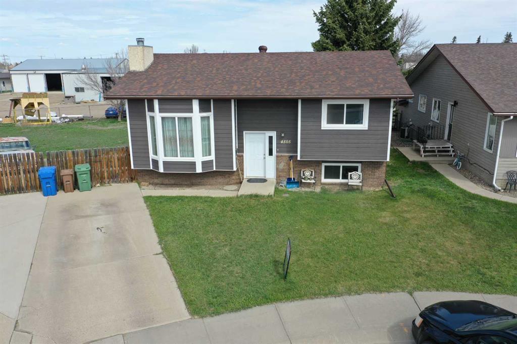Remember playing or watching the kids in a friendly game of street hockey? The best was when you didn't have to move the net every 10mins. Here, it's possible! This home is located in a cul-de-sac on Taber's south west end of town. Sitting on an enormous 9,600 square foot lot, there will be plenty of yard space for a garden, play structure, fire pit area or even a garage! Inside and out of this split entry house you'll see a few updates like hardi plank exterior, pvc windows, updated kitchen flooring, some light fixtures and some painting as well. The main floor offers a sunken living room with wood burning fire place, dining/kitchen areas with newer patio doors leading to a new deck, a 4pc bathroom, the primary suite with 3pc en suite and a second bedroom along with storage closets. Downstairs there are 2 more bedrooms, the laundry/furnace room, a storage area and under the sunken living room, a great place for the kids playroom! Unlock the full potential of this property through renovations and personal touch.
