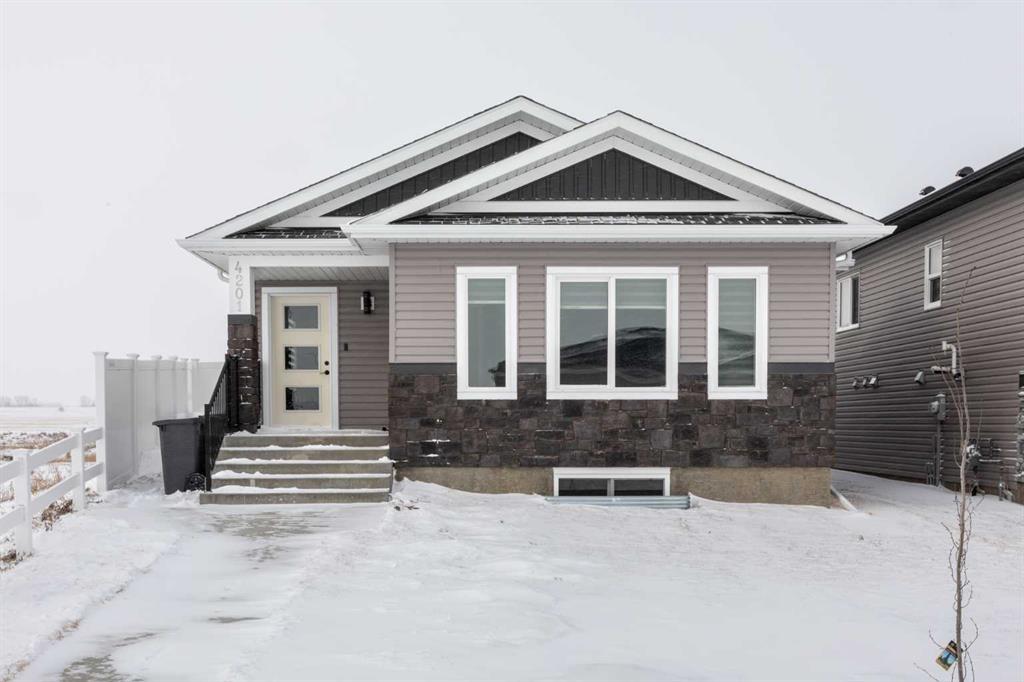 Welcome to Bella Vista, where you'll find a charming and accessible bungalow ready to welcome you! This lovely home offers 2 bedrooms, 2 bathrooms, a spacious open kitchen/living and dining area all on the main floor. The master suite is a cozy retreat with a stunning stone-faced electric fireplace, a generous walk-in closet, and a luxurious ensuite featuring a walk-in/accessible shower. The kitchen boasts beautiful quartz countertops, a stylish black tile backsplash, stainless steel appliances, and vaulted ceilings. Hosting guests is effortless with the dining area and living room just steps away. Plus, enjoy the convenience of a double detached garage, currently serving as a heated home gym but easily convertible back to a garage. Lastly, the unfinished basement presents a blank canvas for you to add your personal touch and creativity!