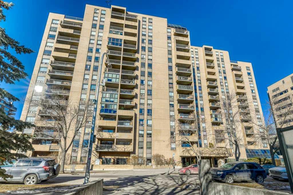Fully renovated executive one bedroom unit in the desirable well managed Dorchester Square building and walking distance to Downtown office towers, 17th Ave entertainment, Safeway shopping & Barb Scott Park relaxation. This spacious open concept condo features an upgraded kitchen with stainless-steel appliances, cozy patio with downtown views, separate storage with built-in shelving, modern good sized bedroom, private updated bathroom and underground parking. Renos in the last 8yrs include expanded kitchen with upgraded cabinets & counters, stylish décor & paint throughout, laminate flooring and updated bedroom & bathroom. The building features a state of the art gym, racquet court & sauna, party & rec room, secure bike storage and is located on quiet street close to all amenities, shopping & restaurants.