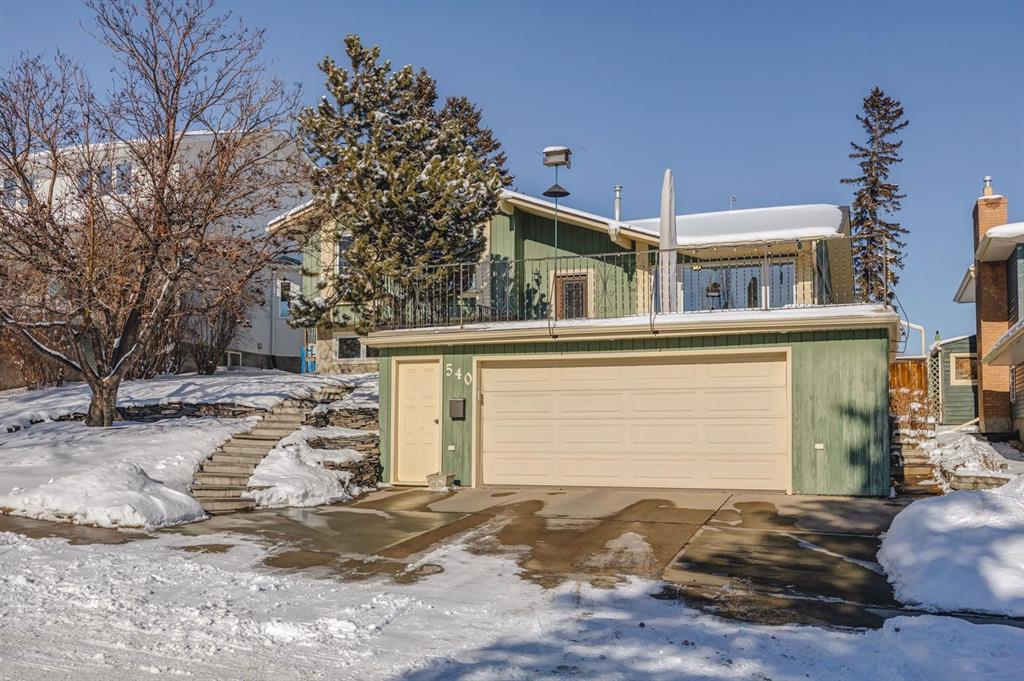 What a fantastic Dalhousie location for this mature detached home on a quiet, tree-lined cul-de-sac with no through traffic and next to a large green space and surrounded by high quality, renovated homes - this should be the one you look at asap!!! Important renovations include all newer windows, front and rear door, metal tile roof - with a long lifespan, garage overhead door, newer hot-water tank and furnace upgraded too! DOES NEED MINOR COSMETIC RENOVATION - PAINT ETC, BUT SPEND $5000 & QUADRUPLE YOUR RETURN! This fully developed 4-level side-split home has a total of 4 bedrooms, 2 & a half bathrooms, upgraded kitchen with island breakfast bar, living room, lower family room, and recreation/storage room too! It has an oversized double attached front garage with a large south facing deck on top of it - a really warm, sunny and attractive place to chill in the warmer months. The garage roof is supported by a reinforced steel beam, so there are no pillars in the middle of the garage to get in your way when parking! This home is on a full-sized 54 ft X 120ft treed lot, with a large rear deck surrounded by a mature hedge, an attractive lawned area, and has a rear gate leading to the lateral park system along John Laurie Boulevard - a perfect set up for dog owners who like to take their dogs for extensive walks - it is possible to walk to the west side of Nose Hill Park using this park system. The main floor boasts extensive hardwood flooring, and the bedroom on the lower level has its own ensuite 3-piece bathroom - making a perfect place for your teenager, or use it as a guest suite when visitors come to stay. Dalhousie remains the truly hidden gem of NW Calgary: a mature area, filled with multiple schools, parks, an extensive parkway system running behind the homes, and has excellent C-Train access at Dalhousie Station - making for a fast commute downtown, and to the University of Calgary, SAIT and its neighbour - the Alberta University of the Arts(formerly ACAD). Dalhousie Station includes multiple shops - Safeway, Chapters, and numerous restaurants, and is also a major hub for Calgary Transit's bus system - you can catch buses from here to take you all over Calgary. Nearby Northland Mall is undergoing extensive renovation to include living accommodation, and the ever popular Market Mall is within close driving distance. THIS IS THE HOME FOR YOUR FAMILY IF THEY WANT TO LIVE IN A REAL COMMUNITY WITH EVERYTHING CLOSE BY - but still have a quiet and private location. HURRY TO VIEW THIS BEAUTY!!!
