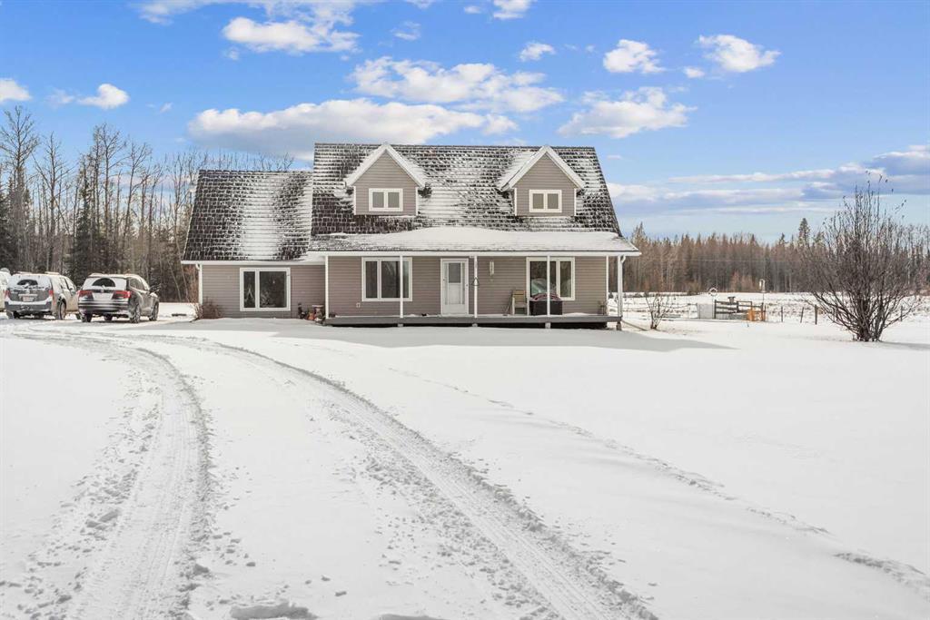 Welcome to your charming country retreat! Nestled on nearly 156 acres of picturesque Alberta landscape, this 4-bedroom two-story country home offers private country living at it’s finest. As you arrive, you'll be captivated by the private driveway and the gentle upslope of the land, perfect for pasturing animals. Old-world charm envelops the property, complete with an aged barn, corral system, gardens and a pond - instantly offering a slice of countryside tranquility. Step inside, and you'll discover a world of comfort and convenience. The spacious mudroom beckons you in, leading seamlessly to a laundry room equipped with a handy sink, laundry chute and an adjacent washroom—every farmer's dream setup. Continuing into the heart of the home, you're greeted by expansive living spaces adorned with custom touches. The beautifully lit country kitchen boasts newly installed custom cupboard fronts, ample storage, and a generous dining area, perfect for hosting gatherings of family and friends. The living room offers a cozy retreat with a lovely window overlooking the property. Adjacent to the living room, a versatile space awaits—currently used as an office or easily converted into an extra bedroom, the choice is yours. Upstairs, the charm continues with a large primary bedroom featuring a walk-in closet and a bonus room, ideal for a cozy sitting area, nursery, or craft room. Two additional bedrooms and a well-appointed bathroom complete the upper level, providing ample space for family and guests. Outside, you’ll find a meticulously kept yard featuring storage sheds, a canvas-covered vehicle shelter, a greenhouse, well built garden beds and both a covered front porch and a back deck – perfect for BBQing and entertaining. This property exudes thoughtful maintenance and care. The exterior boasts a maintenance-free composite deck on the front of the house, rubber shingled roofing, and new energy-efficient vinyl windows, ensuring peace of mind for years to come. The crawl space has been engineered for safety and efficiency with professionally installed radon prevention and the foundation has a recent engineering certificate. The property is fenced, cross-fenced and fully set up for animals with pens, and automatic water. The 32’X56’ shop has gravel floor and 220V power – perfect for working, with ample room for storing toys. School bus picks up at the end of the driveway, and goes to the fantastic K-12 school in Spruce View. Escape the hustle and bustle and embrace the serenity of country living – this charming property has it all.