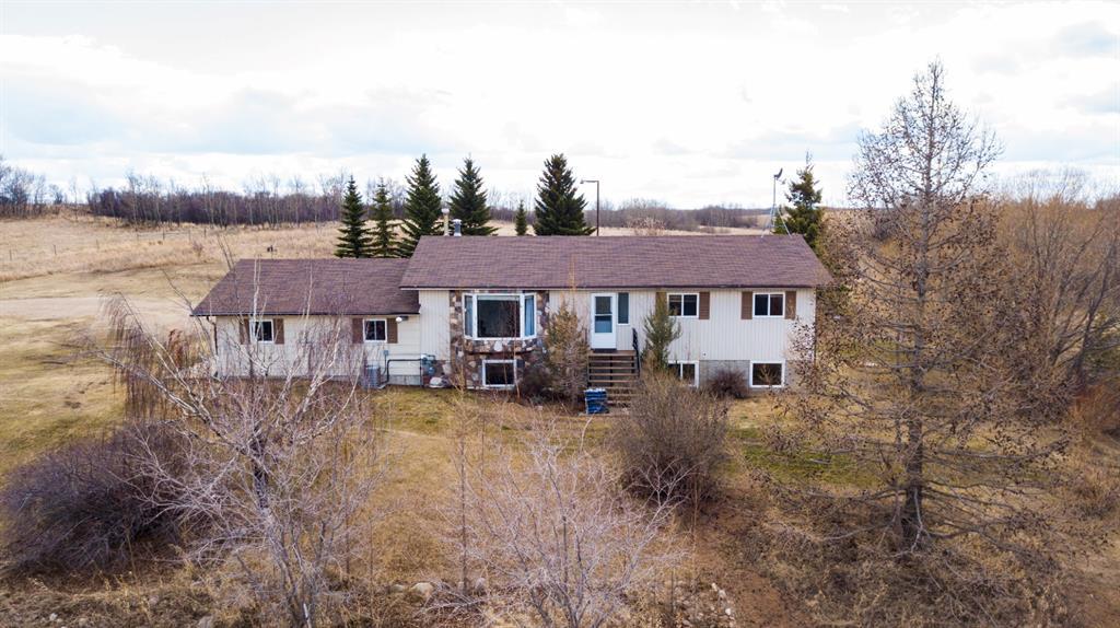 If you have been waiting for an acreage on a highway this could be the one. This well treed acreage sits on 3.21 acres on Hwy 26. It's a 1363 sq foot raised bungalow that has 4 bedrooms, 3 bathrooms, main floor laundry, nice open concept kitchen/living space and a south facing deck to enjoy those morning coffees or evening BBQ's. The double attached 24x29 heated garage has access to the basement with plenty of room to store your extra belongings. Recent upgrades include running natural gas to the home, hot water tank(2021), sump pump & back water valve(2021), opening up the kitchen with a sit up island and a nice beam with lights and more. Drilled well and a pump out septic system. Make the move to the acreage today with only a 10 min drive to Viking or 20 min to Sedgewick!
