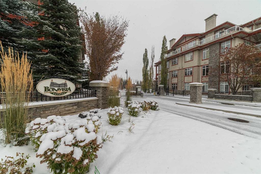 Enjoy carefree living in the prestigious gated Bonavista Estates II. Rarely do homes come up for sale in this sought after and vibrant community. Welcome home to this 1036 sqft, 2 bedroom, 2 bathroom unit that is bright and spacious with a great floor plan, 9-foot ceilings, in floor heating, A/C, underground heated parking and storage. A roomy entrance greets you and offers plenty of storage for everything. You will love the generous sized kitchen with beautiful granite counter tops, extra drawers and cabinets, a separate pantry and an oversize breakfast bar that is the perfect spot for family and friends to gather. The living and dining room feature a cozy gas fireplace and floor to ceiling windows that add tons of natural light. The large primary bedroom has double walk through closets and a huge 5 piece ensuite with oversized vanity for extra counter space, double sinks, walk-in shower and soaker tub. The 2nd bedroom is also a good size and could be used as a home office, den or craft/hobby area. The convenient 2nd bathroom with walk in shower is great for visitors and guests. In suite laundry and additional storage completes the unit. The SW covered balcony has a gas hookup and a new roller shade for those sunny evenings making it a great extended living space to relax, plant flowers and enjoy sunsets. This unit comes with 1 titled underground parking stall and assigned storage space. Amenities include a party room, theatre, exercise room, guest suites, car wash bays, gazebo/garden area and loads of visitor parking. The beautiful club house is a great place to host family events and to join your community for a game of pool or any of the many social events planned by the residents. This location is ideal, walk across the street to Avenida Farmer’s Market & food court, pharmacy, restaurants, Tim Horton’s, shopping, LRT and nearby Fish Creek library, Trico Center & South Centre Mall. Call today, this one will not last!