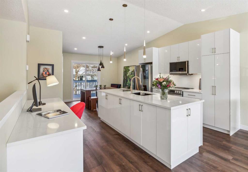 Welcome to your dream 55+ home in the heart of Lincoln Manor! This rare, stunning villa boasts new custom renovations that exude beauty, elegance and sophistication consistently throughout. Bathed in natural light, this home invites you to bask in warmth and charm. Step inside the large front entrance to view the newly opened floor plan that offers luxury wide vinyl plank flooring throughout and a bright, spacious living room with fireplace. Adjacent is an expansive kitchen, adorned with quartz countertops and lovely high gloss white cabinetry accented with gold hardware, creating a modern, feminine aesthetic. High-end luxury appliances stand ready to assist in your culinary endeavours (tap twice on the ThinQ French Fridge door to view the interior without opening the door, convection ceramic top stove, steam microwave hood fan, dishwasher), while a large island provides ample space for meal preparation and entertaining. This space boasts a second generously sized island that can function as a buffet for entertaining, offering additional storage and a versatile space, ideal for those who work from home or enjoy creative projects. Dual pantry storage ensures that organization is effortless. Sliding glass doors off the dining room offers further outdoor entertaining next to a quiet green space. A lovely main floor powder room off the front entrance provides privacy for guests. Continue through to the conveniently located laundry room with sink and stacking washer and dryer, making laundry day a breeze. Retreat to the spacious main floor master bedroom, where wall to wall custom cabinetry adds both functionality and style. A custom hanging door lends stylish access to the ensuite bathroom that is a sanctuary unto itself. It features a large soaker tub, perfect for unwinding after a long day (with water from a new high end water softener!), and a huge walk-in glass shower, dual sinks, custom lighting, all offering a luxurious spa-like experience. Venture downstairs to discover a large cozy haven with second fireplace, perfect for ambiance and relaxation. A second bedroom awaits along with a lovely 4-piece bath, both with the same luxury finishings. All new windows on the lower level let in an abundance of light and you'll enjoy air-conditioned comfort this summer! With thoughtful design and every single detail upgraded consistently with luxurious amenities throughout and its prime location near Mount Royal University, this custom-renovated villa offers the epitome of sumptuous living. Don't forget to check out the Community Club House.. a wonderful place to meet your neighbours! Don't miss your opportunity to make this your forever home, as it is the only property of its kind now available within Central/SW Calgary.