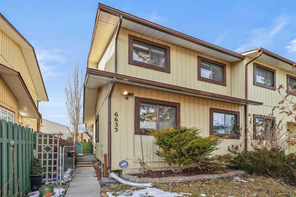Incredible location! Backing directly onto green space and just a block from Nose Hill Park, this end-unit row home offers great potential for the DIY buyer or handy investor. Plus, no condo fees! The main level is well laid out, with a big, sunny living area that enjoys west-facing views of the tiered backyard and the park, and some updates have already been started for you – this home is ready for your flooring selections. A huge kitchen and dining area are bright and open. You could easily add cosmetic updates like new flooring or countertops to your taste, or dig in a bit deeper for a fun remodel project. An office on this floor is a great feature, and there is also a half bathroom, which already has an upgraded vanity. Upstairs, both bedrooms are massive and offer large closets – will you add carpet, hardwood, or luxury vinyl plank flooring? The main bathroom has a vintage aesthetic will be amazing with a bit of a refresh or redesign. In the basement, there is a laundry area with a newer washer and dryer, plus tons of room for your home theatre, hobbies, and more. Outside, the west-facing backyard is a slice of heaven. Mature trees and tiered gardens surround the lawn and the huge back deck, creating a secret garden feel, with dappled light and gorgeous views of sunsets over Nose Hill Park. There is plenty of parking in the gravel pad off the alley. The green space behind holds an off-leash area and a playground right at your doorstep, or cross at the corner to find hours of urban hiking, biking, or adventures with your furry friends. Schools, recreation, and shopping are all only minutes away, and proximity to major routes like 64 Ave, 4 St, and 14 St make getting around the city a breeze; downtown and the airport are both only a 15-minute drive from here, and bus routes are a block down the street. See this one today!