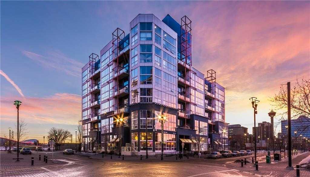 PRICE REDUCED and walls painted white! Assumable mortgage of $206K (with qualifying) at 1.84% until Feb 2026 - which is a $12,600 savings! Two-story NE corner suite available at the Orange Lofts! With over 40 feet of floor-to-ceiling wrap-around windows and 15-foot ceilings, this beautifully designed industrial loft is ideal for those looking for a unique space. The epitome of urban living is complemented by polished floors, concrete columns & ceilings, exposed ductwork, and a central lofted bedroom. The kitchen comes complete with stainless steel appliances, restaurant-inspired open shelving, and flat-panel cabinetry. Additional details include electric upper blinds, a stacked washer-dryer, titled underground parking (P2-#53), a separate storage locker, and a communal rooftop patio with incredible views of the downtown skyline and East Village. Well-managed building with a healthy reserve fund. Condo fees include electricity. Award-winning restaurants, cafes, shopping, an off-leash dog park and the city’s pathway system are all on your doorstep. **No short-term rentals - minimum 6 months, dogs allowed with board approval**