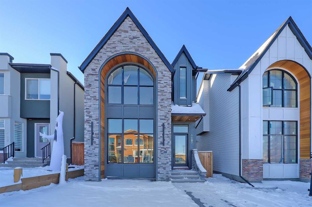 A RARE FIND IN SHAGANAPPI! Built on a 29.5 ft wide lot this incredible, ultra-luxurious detached home offers over 3,280 total sq ft, an ideal floorplan, plus DESIGNER UPGRADES and is ready to become your dream home! Shaganappi might be the ideal inner-city neighbourhood, w/ all the conveniences of urban living at your doorstep. This brand-new home is moments from the Shaganappi Golf Course, Edworthy Park, the idyllic Douglas Fir Trail and the entire Bow River Pathway System is a short 10-min bike ride away. You’re within walking distance of the LRT and multiple schools for all ages! Plus, never-ending local shops & cafes in Shaganappi and surrounding communities add variety to your weekend outings and everyday coffee dates. Stylish & functional, discover luxurious finishings across this entire upgraded home. On the main floor, soaring 11-FT CEILINGS and wide-plank oak hardwood flooring make a grand welcome as you enter the house and step into the central kitchen. The kitchen features custom cabinetry with lots of lower drawers, quartz countertops with matching full-height quartz backsplash, and a custom hood fan. The oversized 15-ft island features a waterfall quartz counter, contemporary vertical panel accents & bar seating. The premium KitchenAid appliance package includes a gas cooktop, built-in wall oven & microwave, a French-door refrigerator & dishwasher. The elegant dining room sits under an ultra-modern chandelier and features a full-wall pantry with elegant glass-panelled cabinets. The rear living room overlooks the backyard and features an impressive media wall, an inset gas fireplace, ceiling-height surround, & a full-wall TV counter. Many of us work from home, part or most of the time, and the mini OFFICE is perfect for productive working days. A good-sized window keeps the room nice & bright, and a built-in desk w/ floating shelves keep you focused & organized. Rounding off the main floor is an upgraded mudroom with a walk-in closet, bench & custom cabinetry. A private powder room sits off the mudroom, featuring a wood slat feature wall, emerald tile flooring, quartz counter, and a full-height mirror. A glass railing follows you upstairs to more hardwood flooring under painted ceilings, a fully equipped laundry room & 2 JR. SUITES w/ walkthrough closets into full 4-pc private ensuites. The ultra-modern primary suite features a soaring 13-ft vaulted ceiling, feature wall with designer pendant lights, an enormous walk-in closet & extensive built-ins. The private ensuite is nothing short of breathtaking, with heated tile floors, an oversized modern vanity, dual sinks, freestanding soaker tub, and a large 5' x 5' shower with oversized bench. 9-ft ceilings in the fully developed basement create a spacious rec area with a wet bar and a good-sized flex room is perfect for a home GYM! The large bedroom & 4-pc bathroom are ideal for guests or teens. Move in this Summer & enjoy everything this home & community have to offer!