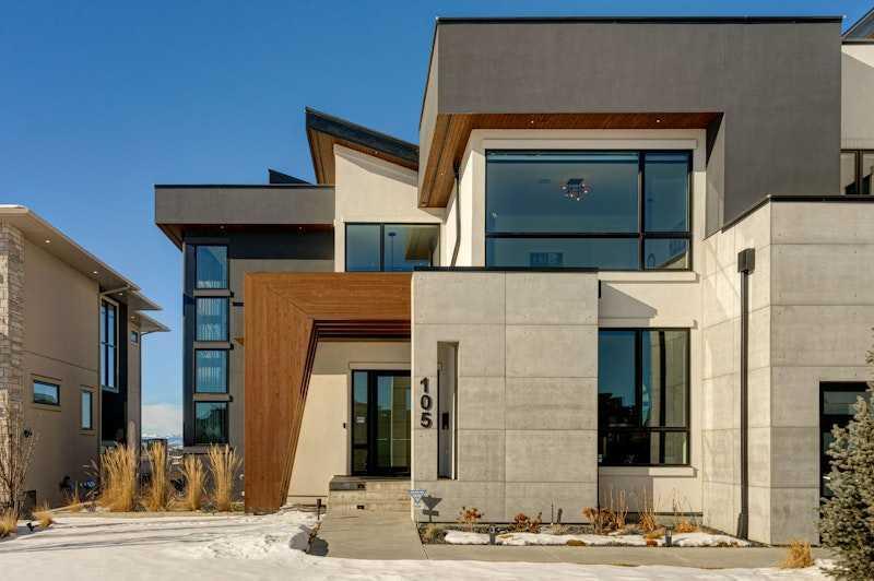 Luxurious, fully loaded walkout with nearly 7,400 sq ft backing onto the ridge with unobstructed mountain views from every level. Architecturally stunning the curb appeal is highlighted by a 5 car garage & solid wood timber accents. Inside this artist-inspired home is the perfect blend of style & function. Focal features include the skillfully crafted mono stringer staircase & local artist crafted concrete 2-sided fireplace providing a grand entrance. The other side of the fireplace creates a warm atmosphere in the soaring 2-story living room with west & south exposure ensuring plenty of natural light. A lift cleverly conceals the TV keeping with the minimalistic décor. Watch the sunset & storms rolling in off the mountains on the upper deck equipped with power screens for 3 season enjoyment. For culinary enthusiasts this kitchen is it! Featuring top-of-the-line Wolf & Subzero appliances including dual built-in ovens, a gas cooktop, built-in coffee machine, steam oven & 2 Miele dishwashers. Adding to the extravagance are Denca Euorpen custom cabinets with servo drive mechanisms, a custom Hammersmith gold hood fan & one-of-a-kind marble tile with brass inlay. Centring the open concept space is the oversized island inviting everyone to gather while you retrieve a bottle of your favourite wine from the temperature-controlled wine room. Elegant lighting adorns the dining room along with a corner built-in for display & serving up beverages to your guests. A main floor den/bedroom is an ideal home office or guest space with a walk-in closet & a private ensuite. Gather in the upper level bonus room for some downtime then grab a snack or refill your drink at the wet bar. The primary bedroom is a true owner’s sanctuary thanks to the opulent walk-in closet with room for even the most extensive wardrobe & a lavish 6-piece ensuite boasting dual vanities, a deep soaker tub & a dual head oversized steam shower with body jets. 3 additional bedrooms are also on this level each with their own private ensuite. Laundry completes this level with dual Miele laundry sets for ultimate convenience. The walkout basement is the perfect extension of the home with loads of room for everyone to convene over movie & games nights or engaging conversations in front of the fireplace. The wet bar is completely outfitted for ease while unwinding or entertaining. The mountain views continue into the 5th bedroom with easy access to this level’s stylish bathroom. Walk out to the covered patio for even more ways to enjoy your outdoor piece of paradise, screens prolong your use in almost any weather. A home gym is cleverly incorporated under the suspended garage slab to ensure a quiet workout that doesn’t disturb the rest of the house. Completely automated by the press of a button or voice control the lighting, audio, video, blinds, HVAC, irrigation, security & cameras adding to your comfort, safety & convenience. Ideally located in this affluent community just a short 15-minute drive to the core!