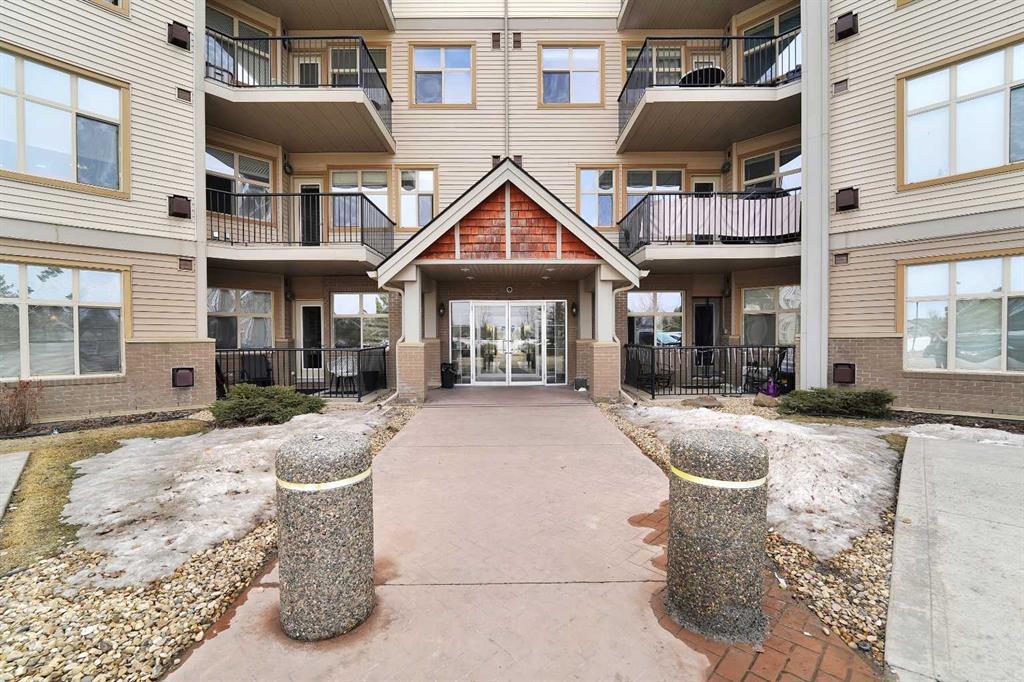 Top Floor Condo with South view Sunshine - Welcome to Sylvan Lake. Well taken care of tiled entry, corner gas fireplace, u-shaped kitchen with eating bar. 2 full bedrooms and nice sized den. Large primary with walk through closet and large tiled shower. Private deck, one parking stall underground with storage unit and one parking stall outside. There is a fitness room and a conference room in the building. Some furniture may be for sale also.