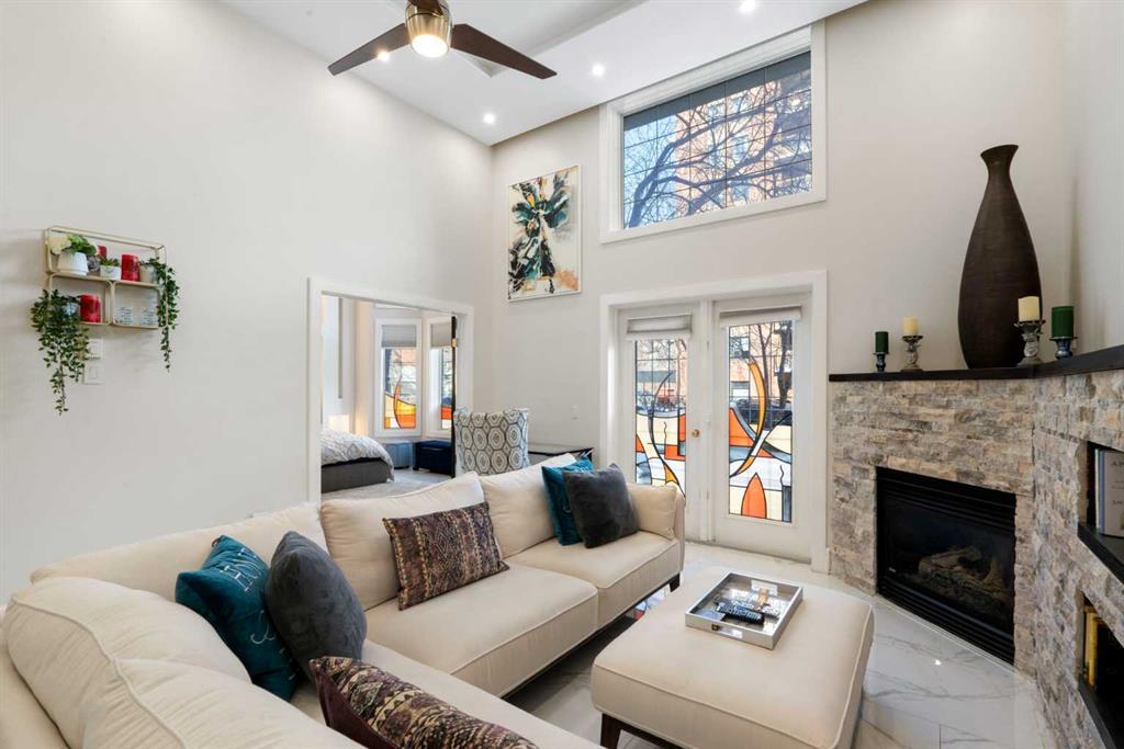 **OPEN HOUSE SUNDAY MARCH 10 FROM 12-2PM** Introducing a rare opportunity to own a meticulously renovated two-bedroom, two-bathroom main floor unit within "The Conservatory," an iconic low-rise building nestled in Calgary's vibrant Beltline. Revel in the allure of one of the city's finest courtyards, a hallmark of this esteemed residence. Impeccably redesigned, this property showcases a contemporary kitchen, upgraded bathrooms, and radiant zoned heated tile flooring. Boasting expansive 16-foot vaulted ceilings and abundant windows, the 850-square-foot space is bathed in natural light, offering views of both the serene courtyard and the charming fenced patio on 15th Ave SW. The primary suite features a walk-in closet and a luxuriously appointed 5-piece ensuite with a freestanding soaker tub and steam shower. The second bedroom doubles as a functional office space with a built-in Murphy bed and storage, ideal for remote work or hosting guests. An open-concept layout seamlessly connects the kitchen, complete with a peninsula eating bar, to the inviting living area, adorned with a cozy fireplace. Additional highlights include assigned storage and titled underground parking. Enjoy unparalleled convenience mere steps from the vibrant pulse of the Beltline, renowned for its diverse array of residential, commercial, and recreational offerings. Embrace the eclectic charm of trendy cafes, boutique shops, and cultural hotspots, catering to the preferences of urban professionals, artists, and families alike. Experience the dynamic nightlife scene, with lively bars and live music venues, alongside tranquil green spaces like Central Memorial Park and Haultain Park, perfect for relaxation and social gatherings. Discover the epitome of Calgary's progressive ethos and cosmopolitan lifestyle in the heart of the Beltline community.