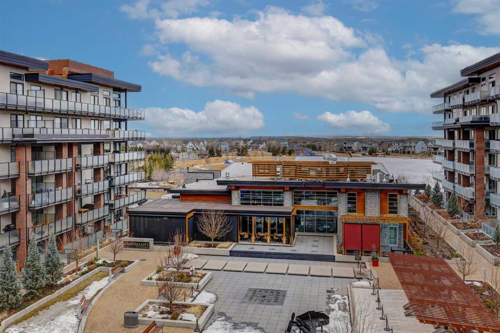 Welcome to the epitome of Resort Style Living at Mahogany Lake! This 4th level 2-bedroom, 2-bath unit presents an open concept design with 9-foot ceilings and expansive windows bathing the space in natural light. The kitchen showcases a 2-tier granite countertop/breakfast bar, sleek stainless steel appliances, and soft close drawers and cupboards. From the spacious living room, step onto your private oversized balcony (with gas line) offering views of the serene courtyard and West end of Mahogany Lake. Retreat to the primary suite featuring a walk-in closet and luxurious ensuite with an oversized shower. The generously sized second bedroom also offers private access to the balcony. Additional features include a 4-piece bath, laundry room, Central AC, titled underground parking stall near the elevator, and storage locker. Enjoy a vibrant lifestyle with access to village amenities including an indoor swimming pool with a large water slide, hot tub, steam room, fitness center, PICKLEBALL COURT, movie theater, industrial kitchen, billiards and darts, art room, woodworking shop, and a private wine room for tastings with friends. The heated underground garage provides car wash, dog wash, and EV charging stations. Ground-level amenities include essential services, retail shops, and restaurants such as Chairmans Steakhouse, Chopped Leaf, Diner Deluxe, and Analog Coffee. With easy access to Deerfoot Trail, Stoney Trail, and a short drive to downtown, convenience meets luxury living at Westman Village. Experience the perfect blend of comfort, luxury, and lakeside living!