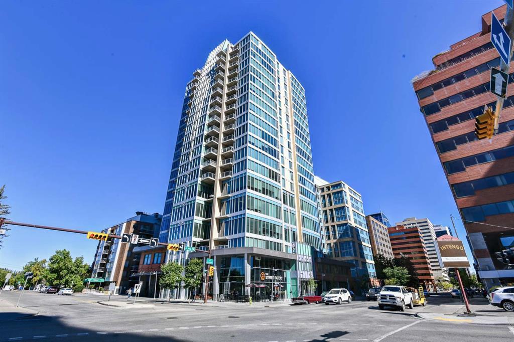 Welcome to luxury living in the prestigious SOLAIRE by LaCaille, one of Calgary's newest high-end buildings, complete with concierge service! This stunning 2-bedroom corner unit captures the essence of modern elegance, is flooded with natural light (SE exposure) and offers an abundance of upscale features (recently renovated). Breathtaking DT views are framed by full-length windows, equipped with motorized window coverings and expansive ceilings add to the grandeur of this remarkable home! As you enter the unit, you are welcomed into a large foyer with tucked away laundry (stacked washer & dryer) for convenience. Prepare to be wowed by the living room, where a floor-to-ceiling dark marble fireplace takes center stage amidst full surround windows, creating an inviting ambiance for relaxation and entertainment. The kitchen is perfect for all culinary endeavours, showcasing rich granite countertops, breakfast bar seating, stainless steel appliances (including French door fridge, OTR hood fan, electric stove, and built-in dishwasher), marvellous tile backsplash, plenty of cabinetry (with frosted glass accents & silver hardware), both recessed & feature pendant lighting and dual basin sink! Just off the kitchen, the dining area provides ample space for a formal table and is accented by designer spike-ball chandelier, perfect for meals with family & friends. The master bedroom is a true oasis, complete with a cheater door leading to the spa-inspired 6pc ensuite bathroom and vast walk-in closet for your wardrobe essentials. Sure to indulge you in relaxation, the master ensuite is equipped with a freestanding soaker tub, separate glass shower with custom tile, and gorgeous dual sink vanity with custom built-ins. The second bedroom offers versatility, perfect for use as a den or guest room, with access to the 3pc bathroom (featuring glass shower & tile accents) and lovely balcony (with gas line for a BBQ), ideal for 'al fresco' dining and entertaining. Convenience meets comfort with a heated underground titled parking stall, an additional storage locker, gym facilities, and a dedicated bike lock-area on every floor. Explore Calgary's vibrant inner city, as this unit is within walking/biking distance to river paths, fabulous restaurants, entertainment venues, transit hubs (including LRT) & Eau Claire + Kensington shopping districts! Don't miss out on the opportunity to experience luxury living in one of Calgary's most sought-after locations. Schedule your private viewing today!