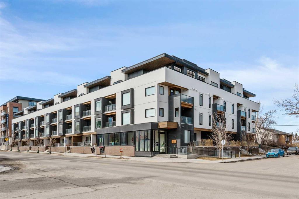 COCO is a Luxury Modern Condominium Development in the Popular Community of Marda Loop. Offering two bedrooms, two baths, in suite laundry, spacious balcony and many upgrades. The bright open Livingroom, Eating and Kitchen feature many upgrades: upgraded vinyl plank flooring, beautiful quartz countertops and designer backsplash, huge Island with wide deep stainless steel sink, an attached table extension, upgraded lighting and corner pantry with pull out shelves, Kitchen Aid Appliances which includes a gas range and hidden hood fan. The Master Suite has a huge window that overlooks the balcony, a spacious walk in closet with closet organizers and classy ensuite with tiled walk in shower, tile floors and quartz counter top. The second bedroom has a large closet and could also be used as a den or both. The main four piece bathroom is spacious and also has quartz counter top and tile floors. The laundry allows for a full size washer and dryer and is across from the front entry coat closet. Many other features include a titled parking stall in the heated underground parking, a good size secure storage unit, a guest suite that can be rented, visitor parking in the underground parking, secure bike storage, a dog wash station, electric car charging station, a workout area/yoga studio, a courtyard and water bottle filling station and much more. There is so much to enjoy in this great Inner City community of South Calgary and Marda Loop, the South Calgary outdoor pool, Parks and playgrounds only steps away from home: sports fields for volleyball, tennis courts, soccer, skating rink, bicycle track, picnic area and lots of green space. Located in a very walkable community, you have everything you need just minutes away, Calgary Public Library, close to Garrison, 17 Avenue, downtown Calgary and easy access to hospitals and major roadways. Public transit is very close by.