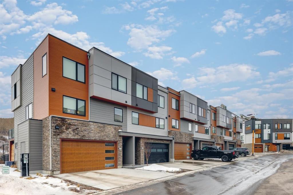 Welcome to the exclusive "Eagleview Phase" in the Village at Trinity Hills. This immaculate 1934 sq ft end unit, with 3 bedroom + den, 2 1/2 bath, 3 storey home features a bright open floor plan & luxurious contemporary finishes throughout. The main floor features a private entry with access to a double garage with R1 for EV car charger & a family room with a walkout to the private fenced south yard. The gourmet kitchen is huge & features an oversized island, an upgraded stainless Kitchen Aid appliance package with gas range, shaker cabinets, quartz countertops, large 29" Kohler work station sink with touch faucet & a walk-in pantry. The kitchen is open to the living room/dining area with French door access to a private 15"11"x 8"9"deck with gas outlet for BBQ, overlooking a 160-acre treed reserve. This level also includes a private powder room & a den. Upstairs features 3 bedrooms including a king sized master bedroom with a 4pc ensuite including double sinks, a beautifully tiled shower & a large walk-in closet with custom built-ins. The laundry is conveniently located next to the upgraded 4pc main bath. Trinity Hills is a meticulously designed urban townhome community nestled in Southwest Calgary's Paskapoo Slopes. Enjoy 160 acres of greenery with 17 kilometers of trails & stunning views of COP/WinSport. Just steps away, find urban conveniences like Save-On-Food, PetSmart, SuperStore, the Farmers Market & Cobbs Bread. With quick access to downtown (15 minutes) & the Rocky Mountains, it's the perfect blend of nature & city living.
