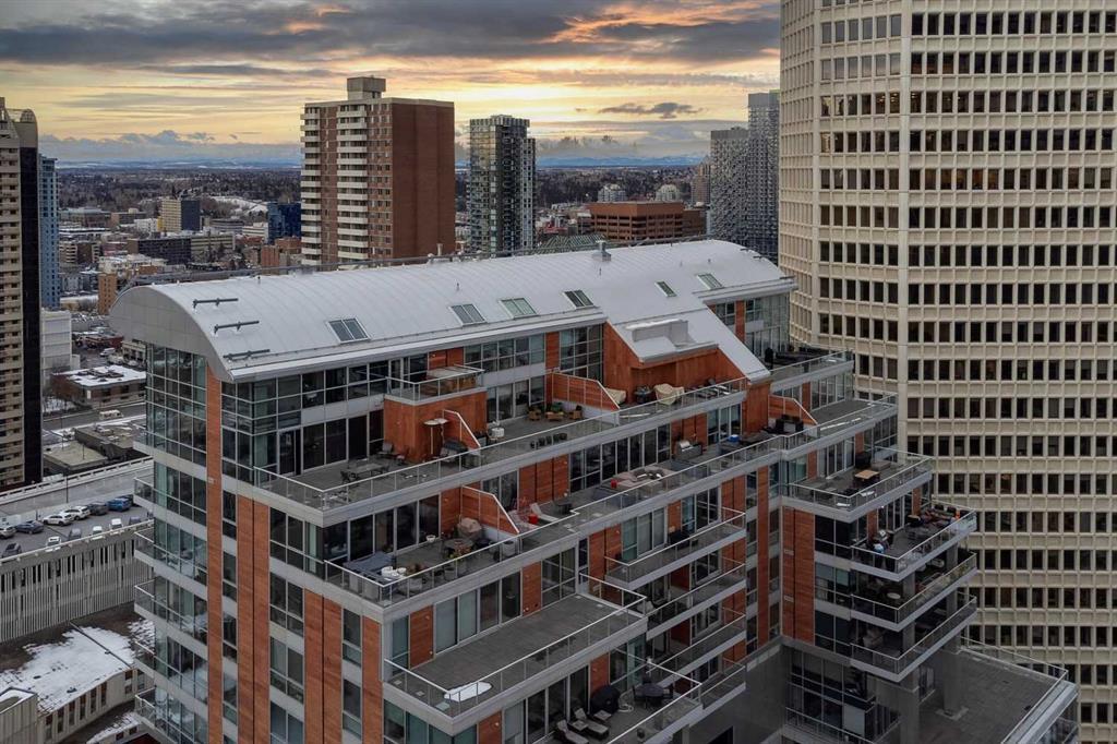 Indulge in the epitome of luxury living with this stunning penthouse perched on the 20th floor of Le Germain Residences in downtown Calgary. One of only four penthouses on the prestigious top floor, this two-storey stunner boasts spectacular downtown and mountain views and an expansive, private rooftop terrace featuring approximately 700 sq. ft. with built-in BBQ. Residents of this exclusive building featuring 40 suites enjoy a sophisticated, turn-key lifestyle paired with full access to Le Germain Hotel amenities and services. This exquisite penthouse welcomes you with open concept living, 9 ft. ceilings, loft-style floor to ceiling windows and a one-of-kind floating staircase ascending up to the second level. The modern chef's kitchen caters to culinary delights and features European-style cabinetry, high end integrated Miele appliances, quartz stone counters and island with breakfast bar. Superb upper level hosts the spacious primary retreat with California style walk-in closet, spa-inspired ensuite with dual sink vanity, extensive cabinetry, signature Le Germain shower wall and a free-standing Kohler tub with overhead bath filler - all designed for tranquility. The primary also enjoys fabulous south west views of the cityscape and Rocky Mountains. The second bedroom is impressive and boasts vaulted ceilings with skylights, views, study area, and ensuite bath. Upper level laundry room and atrium with skylights complete this remarkable residence. Other notable highlights include solid wood interior doors, oversized sliding terrace doors, in-floor radiant heating, private valet closet for hotel deliveries and a large south facing common balcony just outside your suite door for the enjoyment of 20th floor residents. Elevate your lifestyle with dedicated Concierge Service in the resident only lobby with full access to hotel amenities including RNR Wellness Spa, Calgary favourite Charcut restaurant, Le Germain Hotel lobby bar, state-of the art fitness facility, housekeeping and linen service, in-residence room service, meeting facilities, valet parking (complimentary for guests), and club-like signing privileges. This exceptional property comes complete with two underground parking stalls (one oversized) in a premium location and secure storage area. Nestled between the Calgary Tower and Stephen Avenue, this is downtown living at its finest offering residents unparalleled luxury, convenience and prestige. This unique collaboration between world renowned architectural firm LeMay Michaud and Group Germain set a new standard in luxury living and hospitality in Calgary. If you're seeking celebrity level service, privacy, and security there's no other destination that compares.