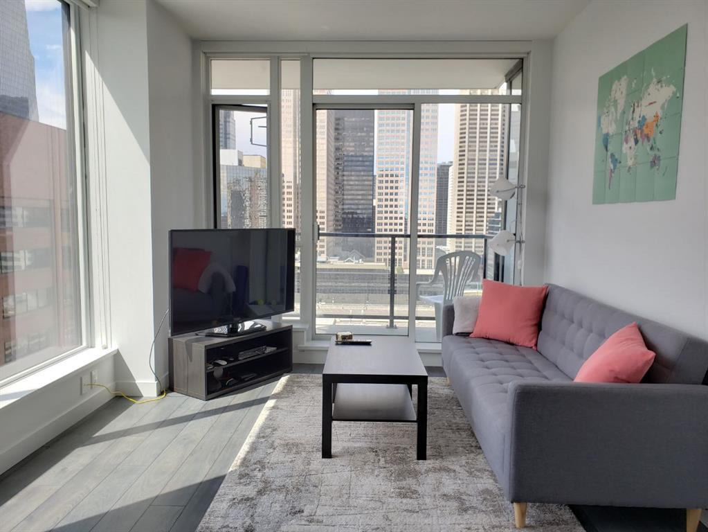 Welcome to urban living downtown, in the sought after high-rise Park Point. The stunning corner unit is in mint condition, with floor-to-ceiling windows facing the cities north and west. The open concept design seamlessly blends style and functionality with high-end appliances, lots of granite counter space for prepping, and ample cabinets. This unit layout offers a PRIVATE balcony, that is not co-joined with another unit. A relaxing escape from the busy hustle and bustle, has stunning views of downtown and sunsets over the Rocky Mountains. The bedroom is a peaceful oasis with blackout window coverings that fits a queen sized bed comfortably. There is not just one but TWO closets for extra clothing, plus a coat closet to store your wardrobe. A well designed bathroom with marble counters, under lighting, and hidden shelves behind the mirror to keep all of your toiletries organized. An additional room for the stacked laundry machines, and plenty of space to add shelving for a pantry or extra storage. For seasonal storage there is a locker on the same level as your parking stall. The amenities includes a full gym, sauna, rec room, outdoor BBQ space, a zen garden, and more. The building has a helpful concierge that will take care of all of your deliveries, you can relax and enjoy your new downtown lifestyle. Two blocks away from the plus 15, and Central Memorial Park, it's truly downtown living at its finest. Absolutely central to everything. Don't wait another minute, book your showing today!