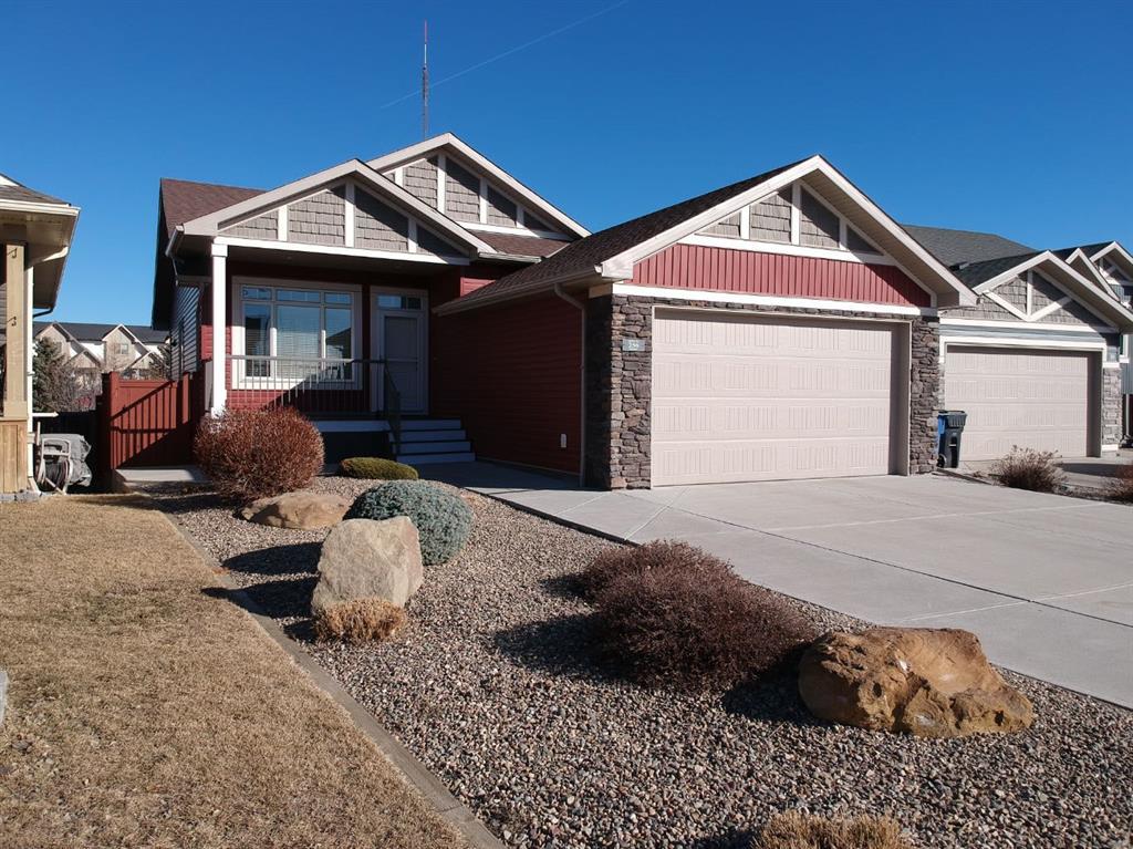 THIS SPECTACULAR BUNGALOW BACKS ON TO A BEAUTIFUL, PRIVATE GREEN SPACE!!! Check all the boxes - this is the home that you have been waiting for! Open the door to a bright, sun-filled floor plan, a beautifully appointed kitchen with quartz counter tops, 4 oversized bedrooms, 3 full bathrooms including a wonderful ensuite retreat, and a professionally finished basement featuring enormous windows. A complete top-quality appliance package is included, as is central air conditioning, a fully finished double attached garage, and upgraded composite decking on the front veranda and back deck. The zero maintenance yard is a huge bonus with almost-endless green space just over the back fence. The East facing yard is sheltered from the wind and late day sun - a huge plus in Southern Alberta! Blackwolf Way is ultra-quiet, and the 73 acre Legacy Park is a short stroll away! This one has it all!!!