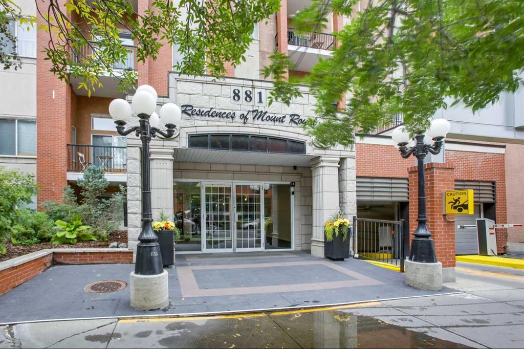 The exclusive "Residences of Mount Royal" an upscale building literally connected to the best Calgary has to offer! (via elevator and +15 to Mount Royal Village on 17th). Quiet and private location on "consulate row", yet right in the heart of Calgary's Red Mile! What a "LOFTY" feeling unit with soaring (11') ceilings, hardwood flooring through-out, big south facing windows and large balcony. Two large bedrooms both worthy of being called "primary" (perfect for a room mate), in-suite laundry and titled underground heated parking with storage. Secure private access on this (third) floor directly to the shops and services of Mount Royal Village and "uptown 17th". Vibrant main floor services include London drugs, dining, gym, coffee shops etc. that are (heated) steps away. This property is what living in a big city is all about - and a must to see!
