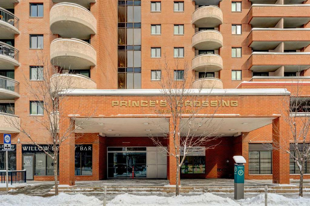 Welcome to the Prince’s Crossing. This south facing 1 bed 1 bath condo features an open concept floor plan, a private patio with city views, plus a renovated kitchen and bath. Enjoy hosting your friends at the spacious island or enjoy the summer sun from your private south facing patio. This unit is one of the few that has been grandfathered in for a washer/dryer, plumbing already installed or use the convenient laundry bay on the main floor. This turn-key unit also offers 1 indoor assigned parking stall and low condo fees that include heat, water and electricity. The building itself is has a ton of conveniences including a gym, a mini-mart convenience store, a hair salon, and a Montessori daycare. With a convenient location close to all the walking paths along the river, a quick block to Alforno for a latte and an abundance of green space at your fingertips, this is the perfect location for the downtown executive, student, and empty nesters who’ll appreciate the convenience of the lock and leave lifestyle. The perfect opportunity for any investor, or first-time buyer. Easy to show, refer to agent remarks for more details.