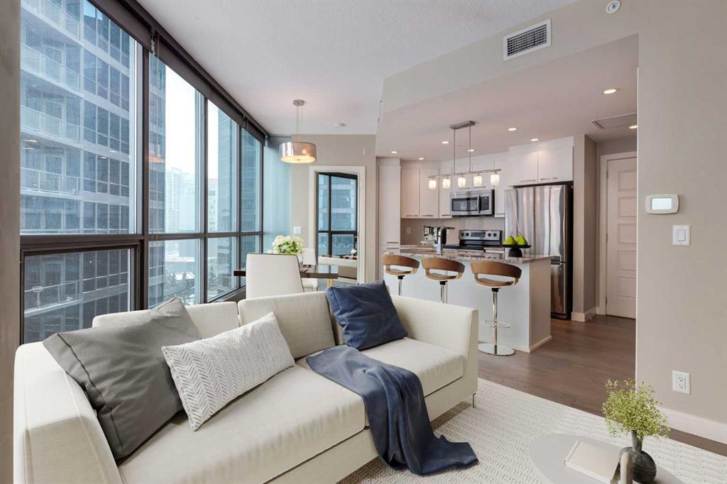 Welcome to Keynote 2, where urban living meets modern elegance! Nestled in the heart of the vibrant Beltline neighborhood, this 1-bedroom, 1-bathroom condo offers a perfect blend of convenience and style. Step into a bright and beautiful living space that exudes a welcoming atmosphere. The open concept design seamlessly connects the kitchen, boasting stainless steel appliances and granite countertops, to the dining and living areas. This layout is an entertainer's dream, providing a space where you can effortlessly host gatherings and enjoy the company of friends and family. Take in the breathtaking views from the floor to ceiling windows of your south-east facing unit, flooding the cozy living room with natural light. For those warm summer days, step out onto your private balcony and indulge in some BBQing while enjoying the cityscape. The spacious primary suite is a haven of comfort, featuring a walk-thru closet that leads to a luxurious 4-piece ensuite. This bedroom offers a tranquil retreat after a busy day in the city. Keynote 2 boasts an array of amenities that elevate your lifestyle, including a well-equipped gym, a social room for gatherings, and the convenience of a concierge service. The building is pet-friendly, making it a perfect home for your furry companions. Additional features of this condo include air conditioning for year-round comfort, titled underground parking for your convenience, and a storage locker to keep your space organized. Live in the midst of excitement, just steps away from Sunterra Market, the Stampede Grounds, and bustling 1st Street. Embrace the urban lifestyle at Keynote 2 – where luxury meets location!