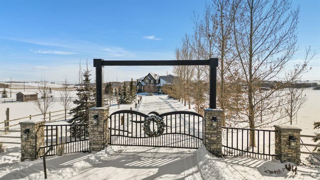 Welcome to your slice of paradise in Foothills County! Nestled on 3.5 acres, this stunning family home boasts an array of features sure to captivate any buyer. As you arrive, you'll be greeted by a gated and paved driveway adorned with elegant lights and lush trees. Crafted with meticulous attention to detail and quality, this residence exudes charm and sophistication at every turn. Step inside to discover an inviting interior adorned with Acacia hardwood floors that seamlessly guide you through the space. The focal point of the living area is a striking stone fireplace, offering warmth and ambiance on chilly evenings, while oversized south-facing windows flood the home with natural light, creating an airy and welcoming atmosphere. Prepare to be wowed by the gourmet kitchen, where timeless white cabinetry beautifully contrasts with a wood-finished island and granite countertops. Equipped with top-of-the-line appliances and ample cabinet space, this culinary haven is a dream for any home chef. Adjacent, a pantry with custom shelving and a full fridge/freezer ensures ultimate convenience. Entertaining is effortless thanks to the open-concept layout, designer lighting, and high ceilings that enhance the sense of spaciousness throughout. A mudroom and oversized triple car garage with finished loft/living space above offer practicality and tons of storage. Upstairs, three generously sized bedrooms await, including a luxurious master retreat complete with a five-piece ensuite and walk-in closet. A bonus room with breathtaking mountain views provides the perfect space for relaxation or recreation, while a convenient upstairs laundry room adds to the home's functionality. The walkout basement is a haven for entertainment, boasting a family room, rec room with wet bar, fourth bedroom, and full bathroom. A cold room with dry storage and a mechanical room equipped with top-notch equipment further enhance the home's appeal. Outside, the southwest-facing backyard beckons with a large deck, patio, and state-of-the-art raised planter bed irrigated garden, ideal for cultivating your own produce. Fruit trees, a rubber chip floor playground, and a powered shed for garden tools ensure outdoor enjoyment for the whole family. Additionally, a brand new five-horse stall barn with a tack room, second-floor loft, power, and water provides the perfect space for equestrian enthusiasts. Complete with a full irrigation system, backup generator, and meticulous landscaping, this property offers the epitome of luxury rural living. Don't miss your chance to make this exquisite estate your forever home! Schedule your private tour today.