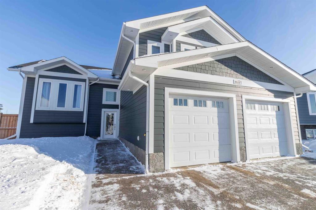 Step into elegance with this modern executive style 1,796 Sq Ft home. Located in a desirable area in Wainwright on 1.5 lots backing onto an open field with walking trails behind. As you enter this home, the open concept with vaulted ceilings provides a bright & inviting kitchen with corner pantry, eat-up breakfast bar & rich designer cupboards with quartz countertops. Spacious living/dining room provides a seamless entertaining area. Two additional bedrooms & 4 pc. bathroom complete the main floor. Second level bonus room has created a private master retreat that offers large walk-in closet, 4pc. ensuite with his & her sinks and middle make-up vanity. In the fully finished basement you will find 3 more bedrooms, a family/games area, 3pc. bathroom & laundry room. If this home is not already impressive enough, how about the double attached garage with 2 overhead doors, dry storage underneath the large deck in the fully fenced back yard, central air-conditioning, & a prepared area for a future 24'x24' garage. This one checks all the boxes!