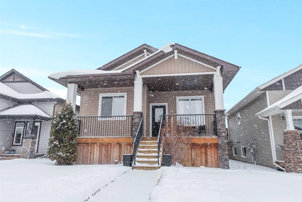 Welcome to 14 Regatta Way in Sylvan Lake, where an incredible opportunity awaits! This beautiful fully developed bungalow with a walkout basement and a double detached garage is nestled in the desirable Ryders Ridge community. Step inside and be greeted by the spacious layout. With four bedrooms and three full bathrooms, this home offers ample space for family and guests. The bright main floor features a cozy living room that flows seamlessly into the beautiful kitchen. Equipped with stainless steel appliances, abundant cabinet and counter space, and a cool built-in desk, and nice dinning room space with room for a large table. The main floor is also home to a huge primary bedroom, complete with a large walk-in closet, a 3pc ensuite, and access to the upper deck for enjoying the outdoors and relaxing in the evenings. Another generously sized bedroom, a convenient laundry room, and a family 4pc bathroom complete the main level. Moving downstairs to the beautifully developed walkout basement, where you'll find new vinyl plank flooring and large windows that flood the space with natural light. Two additional bedrooms and a 4pc bathroom offer versatility and comfort. Outside, the low-maintenance backyard has been thoughtfully upgraded with artificial turf, a large concrete patio perfect for entertaining guests, and a fence, creating a move-in ready oasis. Located in a desirable neighborhood, this fantastic family home is within walking distance to shops, schools, and parks. Don't miss your chance to see this property in person and fully appreciate all it has to offer!