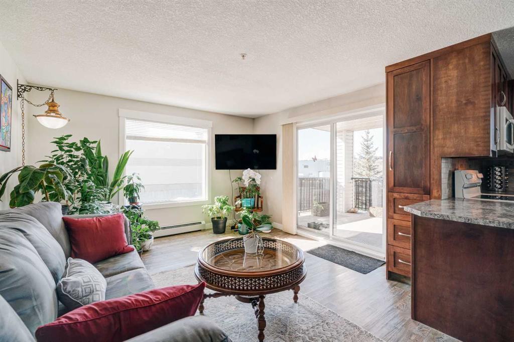 Welcome to one of the most beautiful corner suites in Cimarron Common! This fully renovated property has been meticulously cared for by its owners, and pride of ownership is evident throughout. This suite was entirely redone in 2015, with a new kitchen, new flooring, appliances, blinds, radiant heat covers, doors, trim and paint. The kitchen cabinetry is comprised of premium knotty alder wood, soft close drawers and a plethora of extra built in cabinetry. Additional updates include new vanities, light fixtures and a newer washer and dryer. You will love to host family dinners around a sizeable dining area which can seat up to 8 guests. The open floor plan flows logically and features a spacious primary bedroom can comfortably fit a king side bed, with a walk through closet and a bright and clean ensuite. The second bedroom and full bathroom are ideal for guests or family, with a tranquil view onto the greenspace to the West. This is an extraordinarily quiet corner of the building, flooded with natural light and excellent privacy as it is surrounded by mature trees. It is not uncommon to see wildlife (deer etc.) right outside your window. Note that heat, water, and electricity are included in the condo fees which is very rare. There is an additional utility room (separate to your entryway closet), which doubles as a pantry or additional in-suite storage. This two bed + two bath open and spacious and is one of the largest in the entire complex, with an oversized West facing patio which is perfect for watching the sunset. This property includes one secure underground parking stall. The location is conveniently located next to the Health and Wellness Centre, Walmart, Canadian Tire, Sobeys, Scotiabank, pharmacies, breweries and a plethora of food options. Not only is this building pet friendly, but it is steps away from Cimarron Parkway walking path which flows through Kady Park, a large green space with a playground nearby. Okotoks is known for its kind people, incredible nature walks and is a great place to invest in as it has a projected population of 80,000 over the next 50 years. This would make a savvy purchase for a first time homebuyer, down sizer or investor.