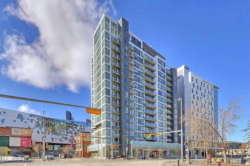 Back to market due to Financing! Welcome to this outstanding apartment nestled in one of the most vibrant inner-city neighborhoods in Calgary. Rare 12th floor corner unit with east facing balcony. As you step inside, you'll be welcomed by a stunning kitchen adorned with modern cabinets and appliances. The spacious living room offers captivating vistas and provides access to the inviting balcony, where you can relax and enjoy amazing city & river view. The sizable bedroom with plenty of natural light and a full bathroom. Moreover, the in-suite washer/dryer enhances the unit's functionality. For added convenience, underground bicycle storage is available. Condo amenities include a unique two-story penthouse gym boasting city skyline views, along with a spacious rooftop patio equipped with BBQ facilities. This corner unit enjoys a prime location, walking distances to all that East Village including Central Library, C-Train, Studio Bell & Arts Centre, Bow River Pathways, Real Canadian Superstore, and much more. Book your private showing today!