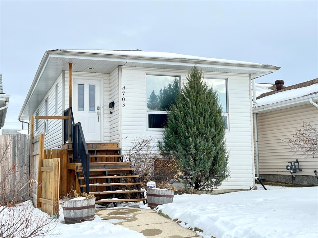 Quick possession available on this Sylvan Lake home! Main floor offers lots of natural light with big west facing windows, roomy dining area for the family to gather and ample cabinet space in the kitchen. 2 bedrooms, full 4 piece bathroom and convenient main floor laundry. Stairs are at the back of the house and lead down to the finished basement with a wood stove in the family room to help on the heating bills, a third bedroom and a 3 piece bathroom. No carpet in the entire house. Back door leads out to back deck and low maintenance backyard complete with a 20'x26' detached garage with in-floor heat roughed in. Home had new shingles 8 years ago and is within walking distance to all the amenities Sylvan has to offer.