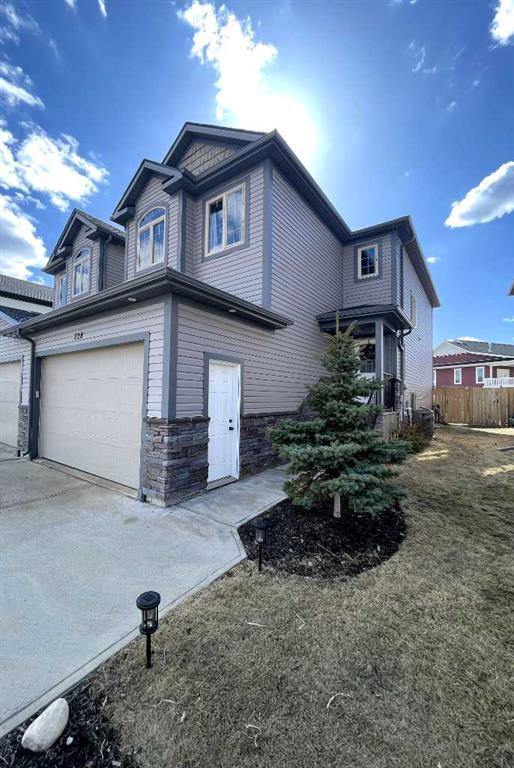 Experience the charm of this delightful two-storey duplex, uniquely attached only at the garage! This home offers central air conditioning, an oversized heated garage, three bedrooms, and 2.5 bathrooms, creating the perfect living environment. As you enter, you are greeted by a spacious foyer with a convenient 2pc powder room, generous closet, and direct access to the attached garage. The bright living room and kitchen showcase dark cabinets, elegant countertops, and a spacious walk-through pantry. The dining area leads to a deck with a pergola, a fully fenced yard, and a storage shed. Upstairs, the primary bedroom features a stunning tray ceiling, a large walk-through closet that leads to a luxurious 5pc bathroom with a double sink, soaker tub, and a separate shower. Completing this level are two additional bedrooms, second-floor laundry, and an office nook overlooking the open stairwell. Descend to the basement, where you'll find a tastefully designed family room with a built-in bar and a modern 3pc bathroom with a walk-in shower enclosed by glass doors. Nestled in one of the newer subdivisions on the East End of Wainwright, this home offers proximity to shopping, walking trails, and Bevan's Park!