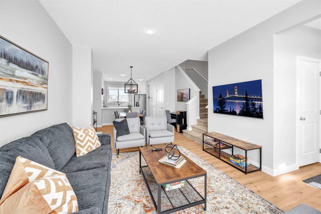 Welcome to this immaculate 2023-built (NO CONDO FEES) END UNIT TOWNHOME nestled in the prestigious Carrington NW community. With its meticulous upgrades and professional décor, this residence EXUDES THE CHARM AND ELEGANCE OF A SHOW HOME, ready for you to make it your own. From the moment you step inside, you'll be greeted by soaring 9’ CEILINGS, The CHEF-INSPIRED KITCHEN beckons with its gleaming quartz countertops, full-height cabinets, and a suite of premium SS appliances, including a GAS STOVE, WATER/ICE FRIDGE AND BUILT-IN MICROWAVE. Entertain guests in style in the spacious living area, where NATURAL LIGHT POURS in through LARGE WINDOWS, creating an inviting ambiance. The adjacent dining space sets the stage for memorable gatherings, while a thoughtfully designed WORK/STUDY STATION adds practicality to the main level. UPSTAIRS, discover a sanctuary of relaxation in the oversized Master Bedroom, complete with a walk-in closet and a luxurious 3pc ensuite bath. Two additional generously sized bedrooms offer flexibility for family members or overnight guests, while a convenient full-size laundry room and main 4pc bathroom adds to the home's functionality. VENTURE DOWNSTAIRS to the PARTIALLY FINISHED BASEMENT, WHERE A SEPARATE SIDE ENTRANCE presents endless possibilities for future development including added extra living space for your family or a LUCRATIVE BASEMENT RENTAL OPPORTUNITY. OUTSIDE, the FULLY LANDSCAPED & FENCED BACKYARD beckons with its low-maintenance design, featuring a sprawling concrete patio and serene black rundle rocks. Behind the fence, a gravel PARKING PAD awaits, providing ample space for two cars or the potential for a future double-car garage. For your peace of mind, the home comes with ALBERTA NEW HOME WARRANTY supplied by the builder. CONVENIENCE IS KEY IN THIS PRIME LOCATION, with transit stops, a future commercial plaza, parks, playgrounds, and the recently built No Frills grocery store plaza all just steps away. Plus, enjoy easy access to YYC Airport, Cross Iron Mills, major highways, and downtown Calgary, all within a short drive. Whether you're a discerning first-time buyer looking to step into homeownership or a savvy investor seeking a lucrative opportunity, THIS HOME CHECKS ALL THE BOXES. Don't miss your chance to experience the lifestyle you deserve – schedule your private viewing today and let your journey to homeownership begin. 3D/Virtual tour available.