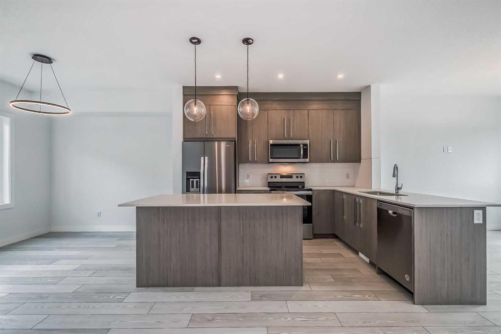 BRAND NEW BEAUTIFUL 4 Bedroom townhome! Upon entering this bright and sunny townhome you will be impressed with the functional layout and neutral colour palette. The main level features open concept kitchen/living/dining with luxury vinyl plank flooring, quartz countertops, high ceilings and a powder room-tucked away. Pantry, large balcony with a view of the mountains are just a couple more features of your main living space. Retreat upstairs to your primary bedroom with tray ceiling, walk in closet and 4 piece ensuite bathroom. 2 more good sized rooms, laundry and full bathroom complete this level. The ground level features a rare 4th bedroom, and did I mention a double attached garage?! All located in the new community of Pinecreek, close to shopping and parks. Call today for your private viewing.