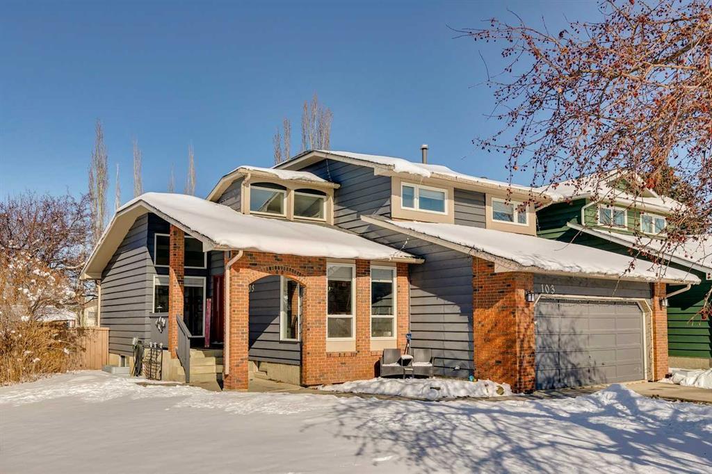 Open House Friday March 8, 5-7PM and Saturday March 9, 1-4PM. Updated 5 bedroom, 3 bath family home on a corner lot in Beddington Heights with over 2863 sq/ft of developed living space on three levels on a quiet cul-de-sac. The main level features a central kitchen with a newer sink/faucet, filtered water system, granite countertops and newer stainless steel appliances, main floor den off the front entrance which currently acts as a boot room, main floor laundry and a 3 piece bath. The living room has a vaulted ceiling with a skylight and a large family room that leads to the fully fenced yard with a large deck with a pergola and 4 zoned underground sprinklers. There is a formal dining room with built-in cupboards and buffet and a separate breakfast nook currently acting as a main floor den. The lower level is fully finished with 2 bedrooms, 1 is acting as a craft room with a non-conforming window, large rec room and a good sized storage room. Insulated Double attached garage with a built-in work bench/storage and a large driveway that could easily hold 4 additional vehicles. Newer windows and top-down/bottom up blinds throughout the main and upper levels. 50 year fiberglass shingles. Walking distance to local elementary schools and transit. There is a greenbelt/off lease dog park down the street from the cul-de-sac and mere steps to nearby parks and playgrounds. Easy access to Stoney and Deerfoot Trails.