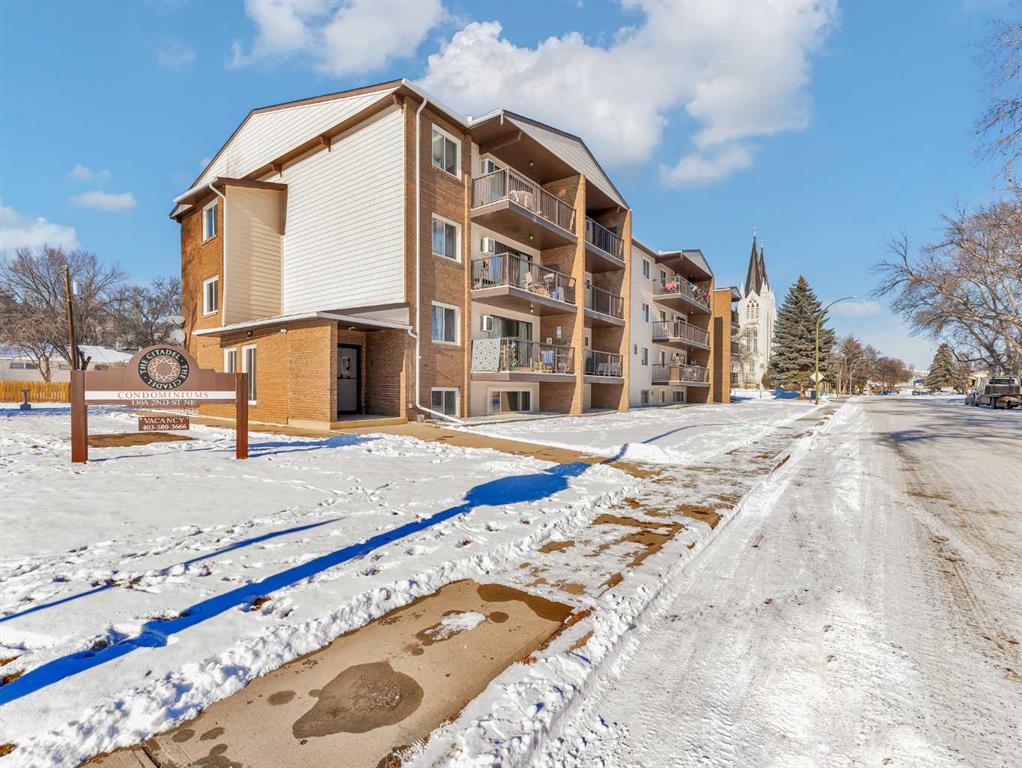 Super affordable condo unit in Riverside! This 2-bedroom, 1-bathroom unit is perfect for a first-time home buyer or investment buyer! Featuring a good-sized living/dining room with access to a private covered balcony, a galley style kitchen, in-unit storage room, primary bedroom with walk-in closet, a second bedroom, and a 4-piece bathroom. Unit comes with 1 parking stall. Condo fees are $432.39/month and include water, gas, sewer, garbage, & all general condo inclusions such as landscaping, cleaning of common areas, common area electrical, security doors & cameras. Coin operated laundry on site, no age restrictions, & pets allowed with restrictions (less than 12 inches at the shoulders & carried in common areas).