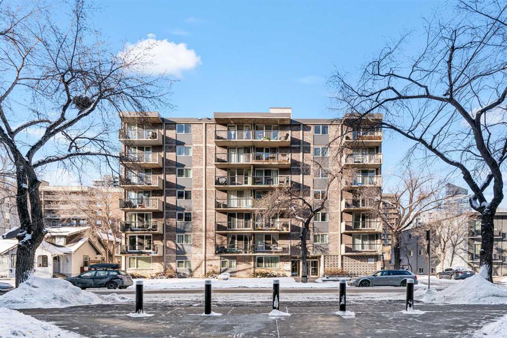 Don't miss this fantastic opportunity to own in the heart the Beltline on this beautiful tree-lined street in a concrete building. This quiet, top floor SE corner-unit, has a big, bright open concept kitchen and living space make it feel much larger. The side window and balcony location offer a refreshing breeze and natural light, yet stays cool in summer. The condominium fees include all utilities, even electricity. Plenty of storage inside the unit with in-suite laundry, while the south facing balcony offers built in seating, is perfect for morning coffee, or sipping wine and watching the the sun go down. Unit is extremely well cared for, and is fully upgraded with trendy black glass appliances, maple flat panel cupboards and beautiful stone backsplash. The huge master bedroom has a large closet and big bright windows, and a bath that features slate tile flooring with gorgeous tile surrounding an extra deep soaker tub. Very well-run building that shows obvious pride of ownership, this quiet concrete constructed building has new windows, Patio doors & a new roof. Pet-friendly with board approval, assigned parking #9, has an elevator and is minutes to trendy 17 Avenue shopping, restaurants, Good Earth Café and all the shops along 11 Street and Sunalta LRT. Walk or ride to the city centre with community garden out front and off leash dog park close by! Ideal for first time buyer or investment property!