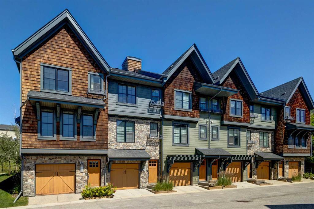 THE ENCLAVE WITH A RAVINE LOCATION - Welcome to a Resort Style complex with the Tranquility of the Secluded location of Castle Keep - surrounded by Ravines, Woods, Ponds and Canadian wildlife - yet convenient to all amenities and a quick commute to Downtown or the Mountains. Lightly lived in, this meticulously cared for townhome boasts an excellent location backing onto the ravine hillside and facing the front ravine with woods, pond and pathways. Floor plan impress on all levels - main floor access a spacious foyer with door accessing the heated tandem garage. Main floor hosts upgraded neutral finishings - 9' ceilings, new espresso hardwood floors & Hunter Douglas window coverings. Kitchen is customized with deluxe stainless steel appliances incl. gas stove, and new fridge, flat espresso cabinetry, graphite quartz counters, convenient pantry, raised eating bar & Garden door to the upper deck with Tranquil ravine views and privacy. Open plan living space also includes a spacious dining area and Living room with views across the front Ravine and a 1/2 bath. Ascend to the Upper floor that features Upper laundry and Two Primary bedrooms both with Ravine VIEWS and featuring walk-in closets with organizers and ensuites. Home includes Smart upgrades - Ecobee Thermostat, Smart Door locks, Ring video Camera & MyQ Garage door. Castle Keep offers a maintenance-free living experience. Nearby walking paths and parks invite you to explore the area's natural beauty. You'll relish the convenience of being just moments away from the Aspen Landing shopping Centre, making city access a breeze. Excellent schools in the area make this a superb location for families. And when you crave a mountain escape, a quick drive will transport you to the majestic Rocky Mountains.