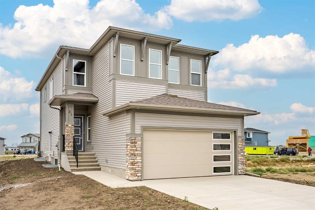 HUGE PRICE REDUCTION for QUICK SALE!!! Check out this UPGRADED BRAND NEW exquisite home which comes with WARRANTY available for immediate possession in the highly sought-after and vibrant neighbourhood of Belvedere. Showcasing 3 Bedrooms, 2.5 Bathrooms, FLEX ROOM / OFFICE, a huge BONUS ROOM on the upper floor, and a SIDE ENTRY to the Basement. As soon as you step through, you’ll discover a sophisticated and contemporary ambiance with 9 ft knock down ceiling, Luxury Vinyl Plank flooring throughout the main living area and into an open concept style floor plan. A well appointed gourmet kitchen with sleek finishes including full height cabinetries, QUARTZ countertop up against white tile backsplash, Chimney Hood Fan, GAS STOVE, stainless steel appliances, huge center island, and walk through pantry. Opening up to a spacious living room and separate dining area truly a space meant for entertaining. This floor also offers a flex room that could easily be used as an office for the work at home professional or can be converted into another bedroom. On the upper level, you will find the Primary Bedroom complete with massive Walk-in Closet as well as own Ensuite. There are 2 generous size secondary bedrooms, along with a HUGE BONUS ROOM, a laundry room and another full bath. Separate SIDE ENTRY leads you to the undeveloped basement with 3 egress windows, 9 ft ceiling, ROUGH-INS for SECONDARY LAUNDRY, WET BAR and WASHROOM offering an opportunity to finish to your own needs or possibly create an income revenue. Location is key, walking distance East Hills Shopping Center with multiple restaurants, Walmart , Costco , Cineplex Odeon, Walk-in clinic, playgrounds, parks, and many other upcoming features of Belvedere community. Easy access to Stoney Trail as well. Be the proud owner of this brand new beautiful house!