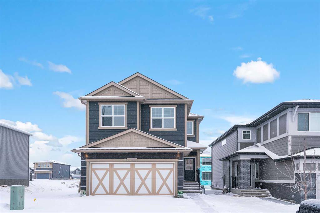 #5 BEDROOM# SIDE ENTRANCE# FRONT ATTACH DOUBLE GARAGE# BONUS ROOM# EXECUTIVE KITCHEN # 2 TONED CABINETS# Welcome to your dream home! This property exudes elegance with its 9' knockdown ceilings, creating a spacious feel. The kitchen is a chef's delight, equipped with a chimney hood fan, built-in microwave, and a range gas line. Modern conveniences like a waterline to the fridge enhance everyday living. The main floor offers a bedroom and a full bathroom, ideal for guests. Stay cozy by the electric fireplace framed with a paint grade mantel. The paint grade railings with iron spindles add a touch of sophistication. The kitchen showcases quartz countertops, undermount sinks, and high-end appliances. The master bedroom is a sanctuary, featuring a 5-piece ensuite with dual sinks, soaker tub, and a shower enclosed by a sliding glass barn door. With a side entrance, this home offers flexibility and accessibility. House features side entrance, 9 Feet basement with 2 windows and mechanical room in the corner. Don't miss your chance to own this blend of modern luxury and thoughtful design – your perfect home awaits!