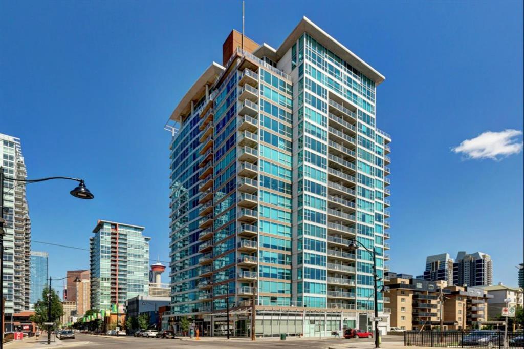 Welcome to this Bright and Beautiful CORNER unit, 2 bedroom condo! The Chocolate is a great building built by Batistella. You'll love the views of the Calgary Tower and especially the Calgary lights at night. This lovely property has been recently updated in the past 1 1/2 years with striking black quartz countertops and backsplash(beautifully accenting the high gloss charcoal cabinets), new bathroom fixtures, new full size stacking LG washer/dryer, new mattress in the Murphy bed (never used) and new paint professionally done. Floor to ceiling windows(facing west and north) give you a wonderful feeling of spaciousness and plenty of light. The second bedroom, with a Murphy bed, makes for a wonderful flex space - working from home office, yoga area or pull down the bed and you have room for guests. The flooring in the unit is polished concrete giving a very modern finish. The corner balcony even has a gas line for your BBQ! There is a titled underground, parking stall with your own bike rack in the front. The patios on the 2nd and 20th floor for perfect for hanging out in this gorgeous weather with friends. With a Walkscore of 98 the location is amazing! Explore the new First Street Market - a very cool place! It's a short walk to Sunterra Market, 17th Ave, shopping and 7 min to the C-train - a great place to live especially if you don't want to use a car!