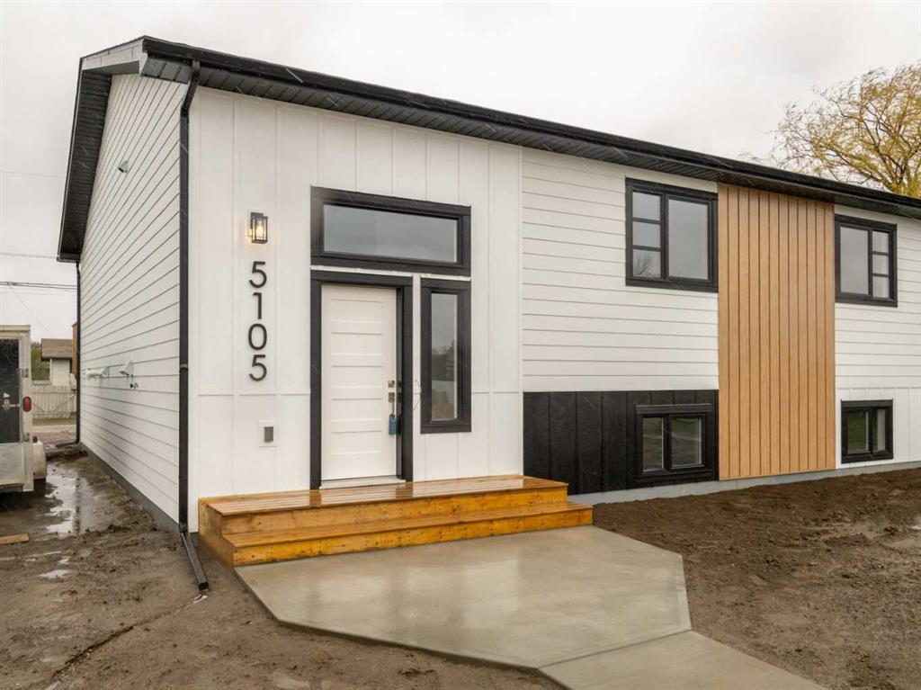 Introducing a brand new half duplex located in a serene neighborhood with stunning views of prairie sunsets that will always remain unobstructed. This modern home boasts 5 bedrooms, 2 baths, and a spacious layout with contemporary finishes. Upon entering, you'll be greeted by a grand foyer featuring high ceilings and a custom bench, perfect for welcoming guests. Ascend the stairs to find a kitchen/dining area adorned with a custom natural light window feature on the side wall, granite countertops, an eat-up island with a built-in dishwasher, and a generously sized walk-in pantry. The pantry includes a counter feature for a coffee bar or toaster, along with ample storage space. The view extends into the living room, which offers access to a back deck through a glass door. The deck features a privacy wall, creating an ideal spot to unwind on summer evenings. The main floor includes two bedrooms, with the main bedroom featuring a sizable walk-in closet with a open flowing floorplan. The fully finished basement features vinyl flooring and three additional bedrooms, one of which is very spacious. Large windows allow plenty of natural light, making the basement a bright and inviting living space. This home is a work in progress, so be sure to check back for further updates and improvements!