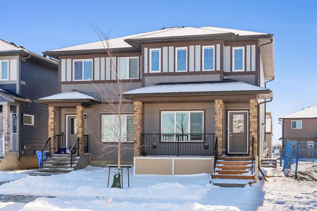 Welcome to this beautiful Semi Detached House with a Full Bedroom & Full Bathroom on the Main Level, Total 4 Bedrooms, 3 Full Bathrooms, SEPARATE BASEMENT ENTRANCE, 2 CAR GARAGE, Built in Deck, Front Porch 2022 Built House Just steps away from Bus Stop, Chalo Fresh co Plaza & many more. On the Main level, you're greeted by a great sized Living Area at the front of the house with good daylight from the big windows, along with the decent sized Dining Area. You will se a Good sized Bedroom & a Full Bathroom on the main level of this house. Kitchen comes with the Granite Countertops, Stainless steel appliances & with a decent sized Pantry space. The separate entrance for the basement has already been built for the future Basement Development to go through easily. On upper Level You're greeted by a Master bedroom with a 3 Piece Bathroom & a walk in Closet. Other 2 Decent sized Bedrooms on upper level shares on common 3 Piece Bathroom. There is a separate Laundry unit at the upper Level. Big sized deck has been already built in this house. 2 Car Garage at the back of the house comes with a very good space for 2 Full size Suv's. This house is situated in the Amenities full community of CORNERSTONE NORTHEAST CALGARY. Book Your Showings Today!