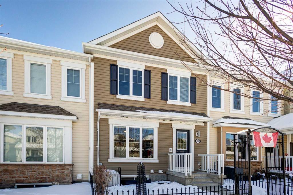 Introducing this exquisite townhome nestled in Airdrie's Windsong community. Boasting almost 1700 SF of meticulously designed fully developed living space, this home presents an ideal opportunity for those seeking modern living WITHOUT the burden of CONDO FEES . Upon arrival, you'll be captivated by its charming curb appeal, boasting classic hues, faux shutters, a wrought iron fence, and a delightful perennial garden.