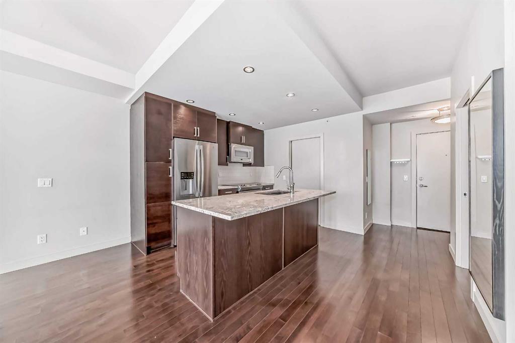 Welcome to TWEED in the sought-out community of Cliff Bungalow. An impeccably crafted 759.1sqft apartment downtown Calgary that truly defines urban elegance. This unique dwelling, with a spacious open floor plan, is flooded with abundant natural light, reflecting off immaculate stainless-steel appliances and glossy granite countertops. The kitchen provides an intimate setting for cooking and conversation alike, perfect for entertainment. Off this kitchen is a 2PC powder room for your guests. A large living room with a fireplace perfect for a cozy evening or a vibrant night of friends. Step into the Primary bedroom, an oasis of tranquility, complemented by a large en-suite 5pcs bathroom and a large walk-in closet. A dedicated laundry enhances functionality while the outdoor entertaining area/private balcony invite effortless living. Enjoy unobstructed views from your balcony or living room of the Calgary tower. 1 titled underground parking is yours, so you don’t have to bother wiping snow off your windshield. The property's prime location ensures you're just steps away from shopping centers and an array of restaurant on famous 17 Ave. The apartment's potential for rental income increases its appeal for investors and homeowners alike. Call your favorite Realtor! This won’t last long.