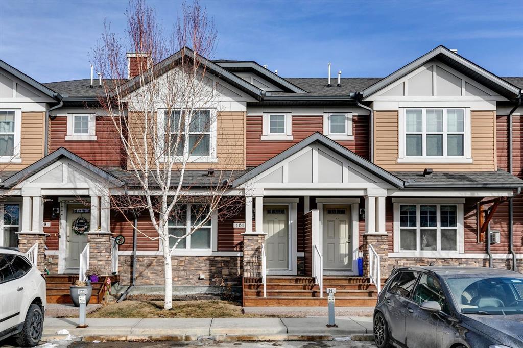 Welcome to Riverside Townhomes! This 3 bedroom, 2.5 Bathroom townhome with two titled outdoor parking stalls is one of most popular floorplans in the Riverside development - Built by Cardel Lifestyles. Located only steps from Blue Devil Golf course, and with immaculate landscaping, this is country living within City limits. With the best location in the valley, this development backs onto walking paths, greenspace + pond, and is a short dog walk away from Fish Creek Park. This immaculate home includes New Paint, New Roof & Siding in 2022, half bath wainscoting, and laminate flooring, in addition to maple shaker cabinetry and the nicest master ensuite in the complex (full tile walk in shower & concrete countertop) - Well kept, well maintained, and sure to impress. Close to Chaparral schools, Fishcreek Park, and numerous biking/walking paths. This is the perfect spot for those with an active lifestyle. -it's pet friendly and the Board has just approved A/C units. Call today for your private viewing.