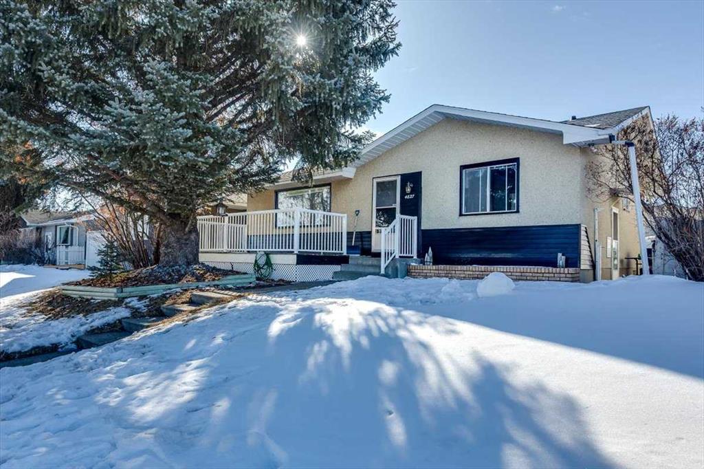 5 BED, 2 BATH BUNGALOW w/ Detached SINGLE GARAGE & ATTACHED CARPORT! Large lot with mature trees. At the front entry you are welcomed by a big DECK. Step inside to the open concept kitchen/dining area. Living room is bright with large windows. 3 bedrooms finish off the main floor & make this home a great layout for families. Downstairs you’ll find a large living room & 2 additional bedrooms. (will need new egress windows) COLDROOM and additional STORAGE ROOM a bonus. 4pc. Bath with SOAKER TUB and Laundry. Detached SINGLE GARAGE with workbench area, partially insulated, newer garage door & opener. ATTACHED CARPORT has a concrete floor. RV/ADDITIONAL PARKING in the back. Alley Access. Newer style shingles. FULLY FENCED and lots of privacy. Tons of potential here! Great for FIRST TIME BUYERS or INVESTORS!