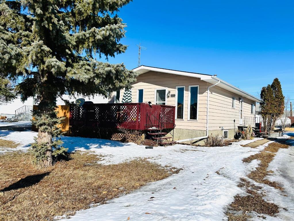Looking for an affordable family home? This 5 bedroom, 2 bath home is located within walking distance to the Shirley McClellan Aquatic Centre, ball diamonds, school, and playground. Situated on a larger 69’ x 169’ lot with a detached double garage and a drive through gravel driveway. Enter this home through the south facing front door with an attached deck and tall evergreens for shade. The main living area is open and has a bright living space, dining area, and inviting kitchen with plenty of cooking space. The laundry area seconds as a side entry mudroom. The main level holds three bedrooms with plenty of closet space. The main floor bath is currently being completely renovated. Basement enters into a spacious family room, with new vinyl windows. Basement holds two more bedrooms, 3 piece bath with a stand up shower, and a large storage room that would also work as home office space. Home has a brand new hot water tank, new basement windows, some updated main level windows, and a bathroom renovation in progress. This property has no adjacent neighbours on the east side.