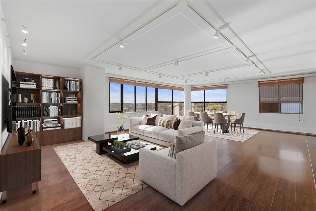 Welcome to Riverstone, one of Calgary's most established inner-city residences located in the heart of Mission, mere steps away from the river pathways, shops and restaurants. Rarely does an opportunity such as this come to market. This 12th floor condo has a south west corner exposure and breathtaking views of the river valley and Rocky Mountains. This view makes this condo amongst the most sought after residences in the building. The open concept main area features a very spacious living room with expansive windows, dining area and kitchen with ample counter and cabinet space, black granite counters and hardwood throughout. Enjoy the magnificent views and sunsets from the comfort of both bedrooms. The primary bedroom features a generous closet and private 4-piece ensuite and the second bedroom provides versatility as a private office or cozy den. An additional 3-piece bathroom and laundry room complete the living space. The residence also includes 2 titled, heated parking stalls and a convenient storage locker on the main floor. Riverstone is an exclusive full-service building with many first class amenities including 24-hour concierge, indoor pool and hot tubs, sauna, fitness center, party room which opens to outdoor patio with BBQ, library, tennis courts and a car wash. Discover unparalleled value in Calgary's upscale condo market - take advantage of this opportunity to make Riverstone your new home!