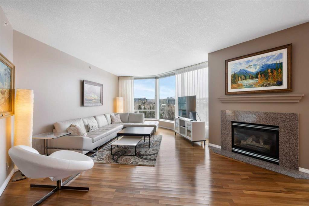 Are you a traveller and want to ensure that your home is being taken care of? This complex has incredible management and will do routine checks on your unit while you are away. Picture yourself living steps to coffee shops & fine dining, the downtown core, the Bow River, Peace Bridge & the river pathway system. Located in a quiet cul-de-sac exclusive to this luxurious building, Point On The Bow offers an extremely well-managed and maintained building with only 38 residences. Includes all of the amenities that you can imagine such as 24/7 concierge service, car wash bay, indoor pool, steam room, gym, social room, and eye-catching atrium lobby with water wall feature and tropical gardens. Unobstructed panoramic river and city views through the floor to ceiling windows are showcased in this 1709 sq ft 2 bedroom & den air conditioned executive unit. The open plan offers stunning hardwood floors, gas fireplace, and access to one of your two balconies. The kitchen features granite countertops, cherry wood cabinetry, eat up bar, and stainless appliances with built in oven and gas range. Continuing to the bedroom wing of the unit you will find two spacious bedrooms plus a den/office which sits between the two bedrooms for added separation. The quaint den is perfect for those who need an at-home office space or perfect for a reading room with its cozy gas fireplace and can easily be converted to a third bedroom. The master suite is perfect for relaxation with the oversized room with another gas fireplace, its own private balcony, walk in closet, and 5pc ensuite which includes 2 sinks, granite countertops, built-in deep soaker tub, spacious shower with bench. Laundry room features Miele washer/dryer with sink and extra space for additional storage. This unit features 2 titled underground parking stalls (#126 and #129) plus an oversized titled storage room #118. This suite has been perfectly maintained and offers an outstanding opportunity to create your dream oasis in the heart of Calgary.